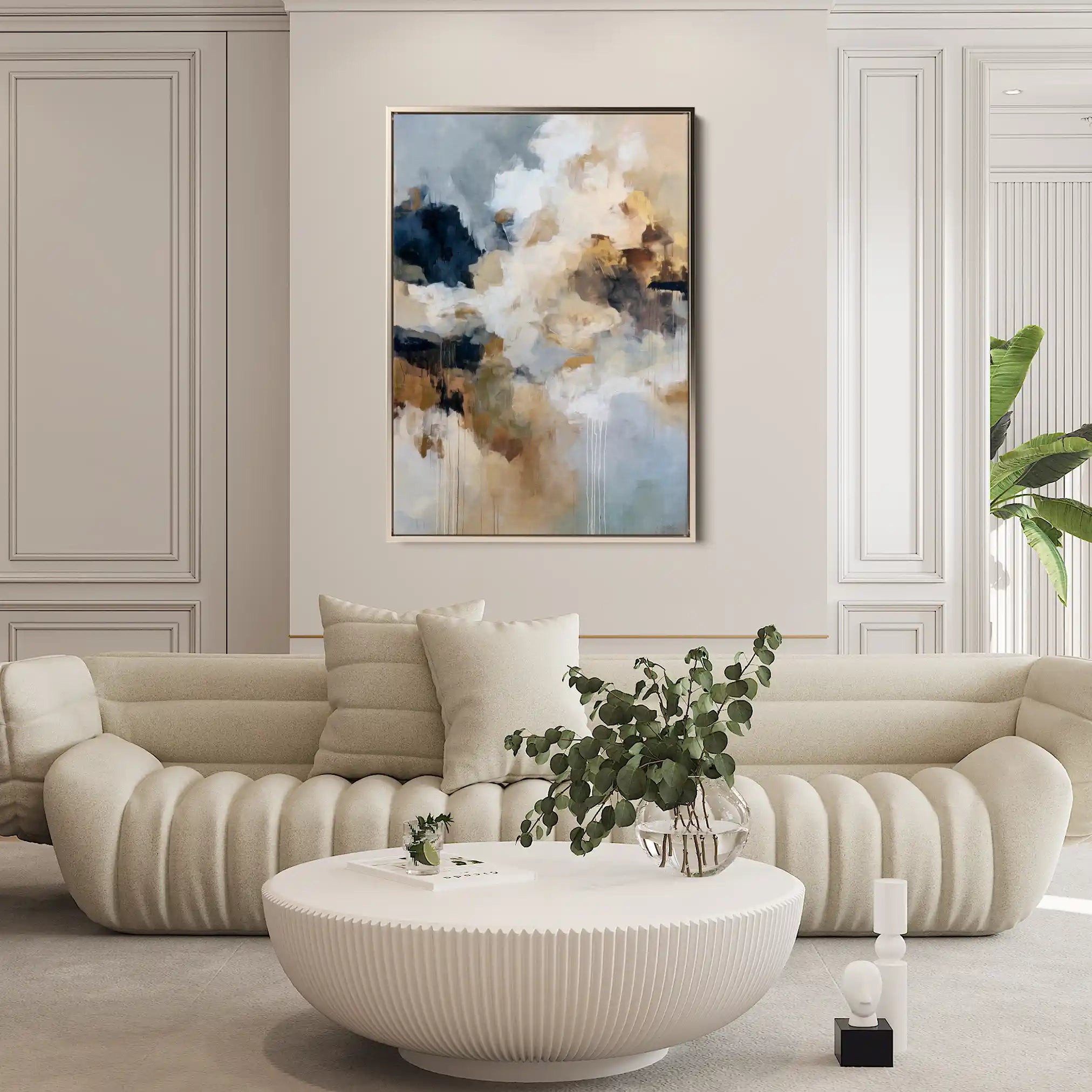 Modern wall art with quiet luxury. Museum-grade printing on 410gsm cotton canvas, set in a slim floater frame—clean, calm, ready to hang.