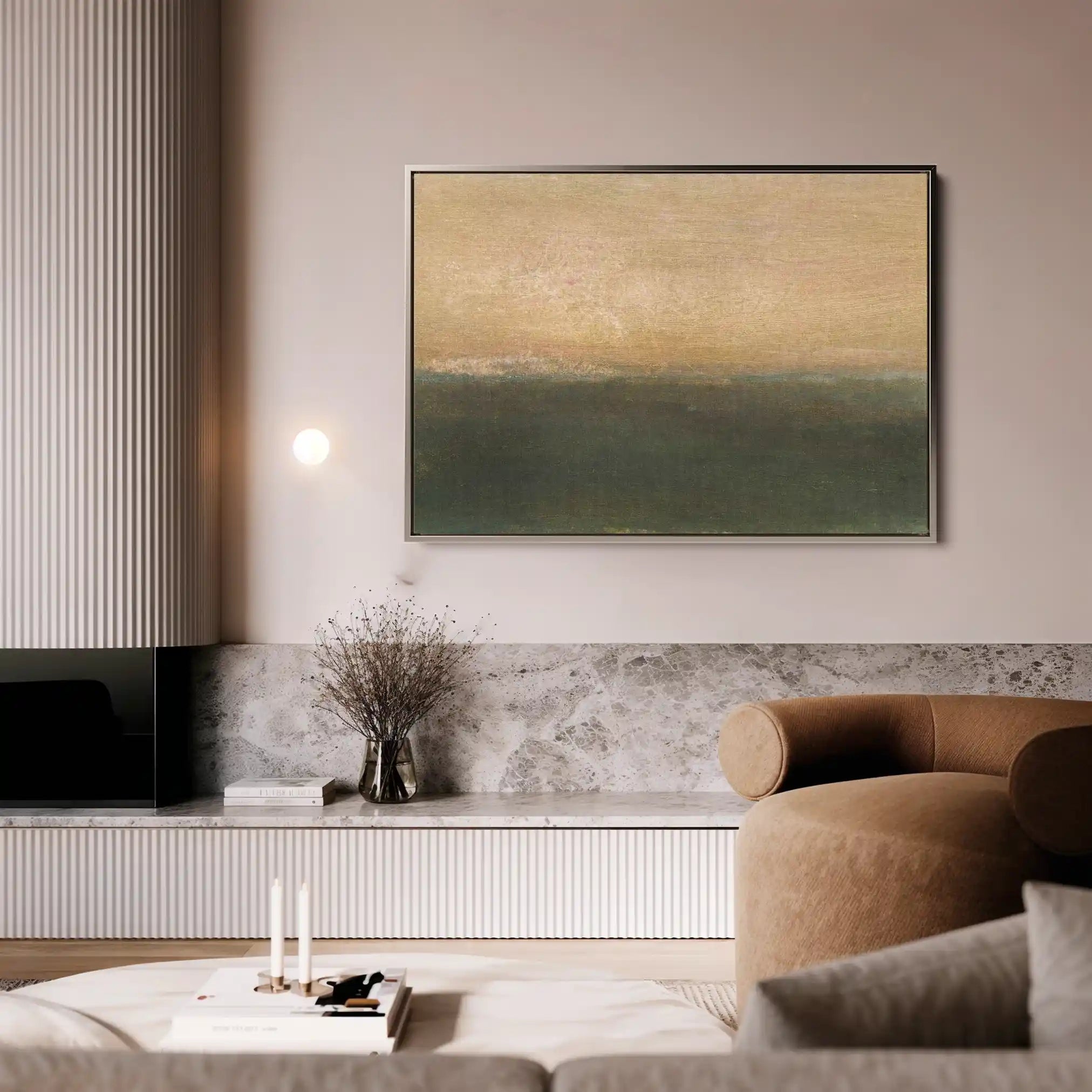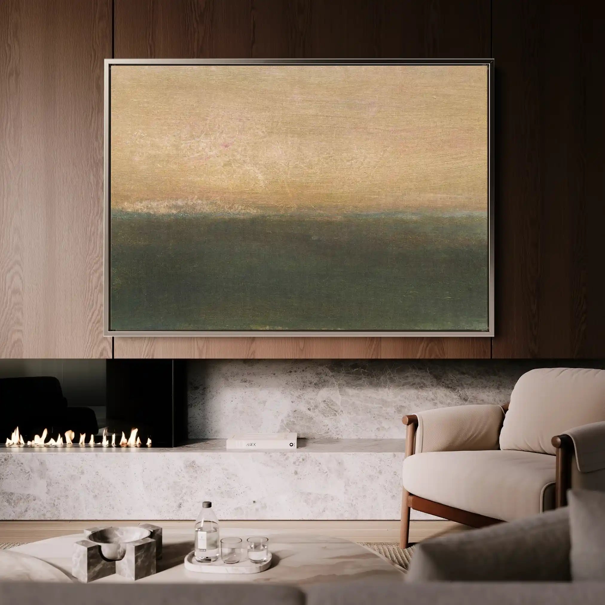 Modern wall art with quiet luxury. Museum-grade printing on 410gsm cotton canvas, set in a slim floater frame—clean, calm, ready to hang.