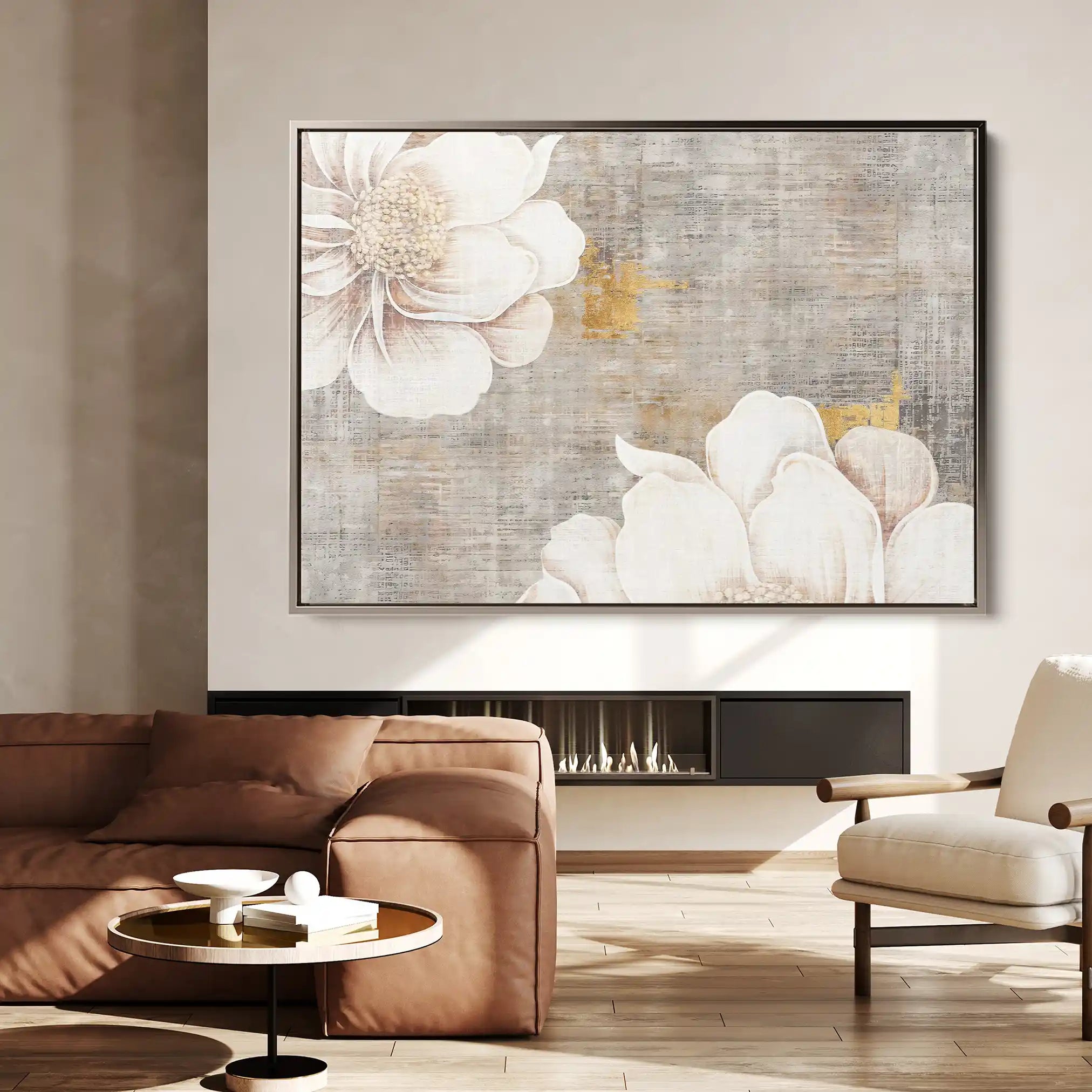 Modern wall art with quiet luxury. Museum-grade printing on 410gsm cotton canvas, set in a slim floater frame—clean, calm, ready to hang.