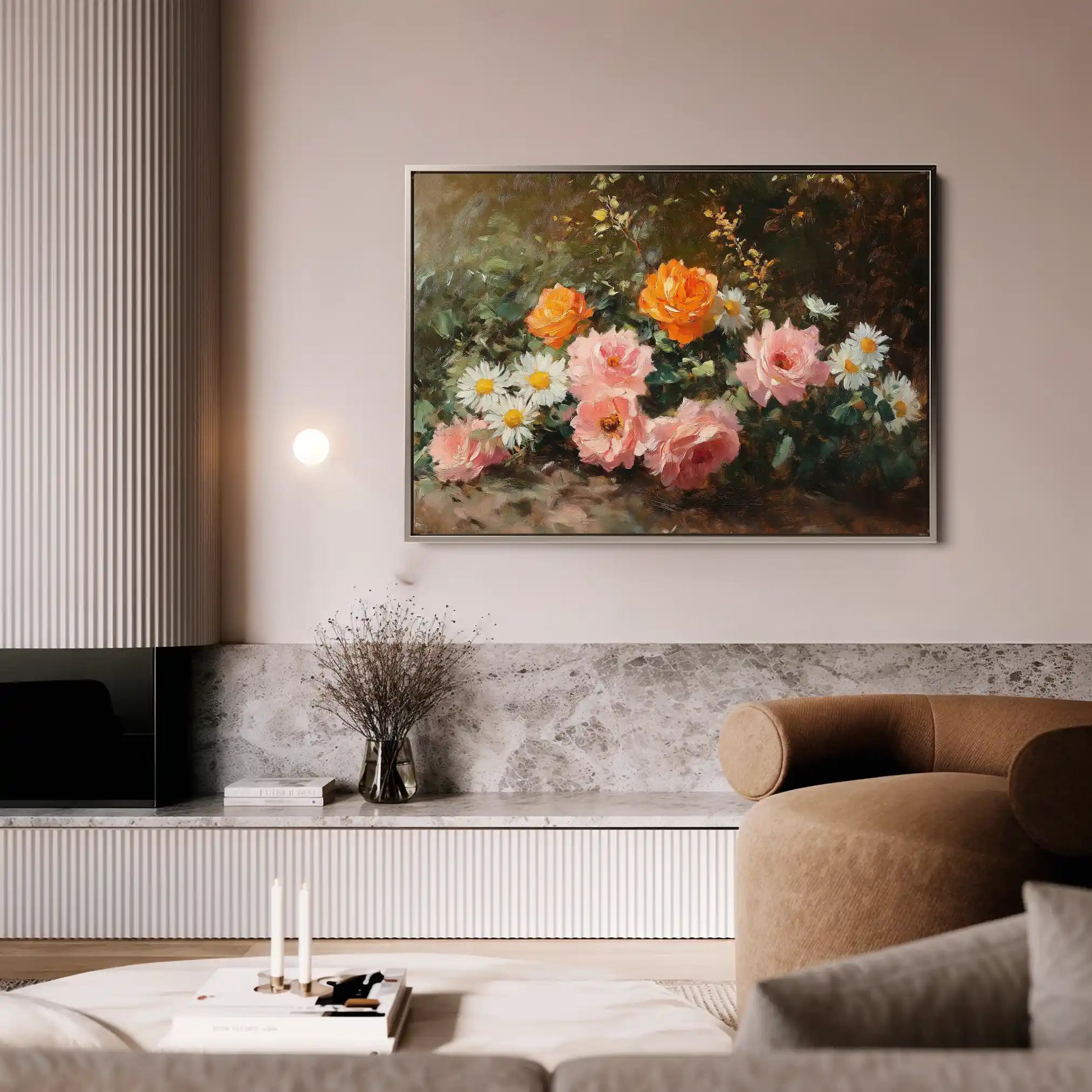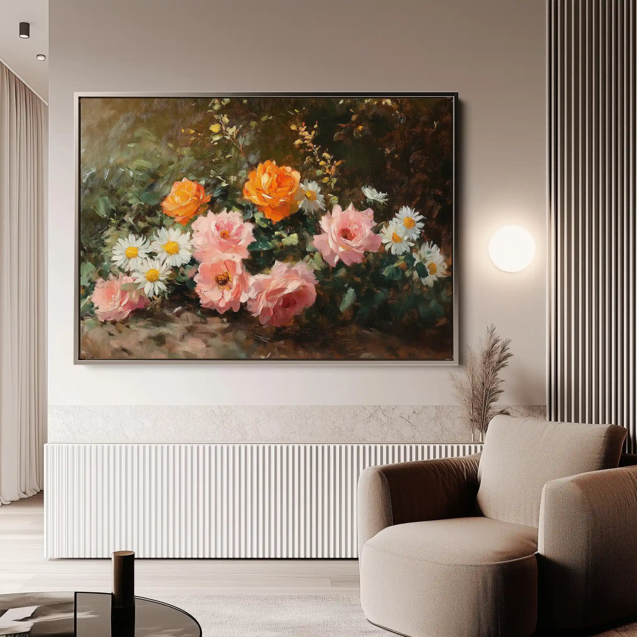 Modern wall art with quiet luxury. Museum-grade printing on 410gsm cotton canvas, set in a slim floater frame—clean, calm, ready to hang.