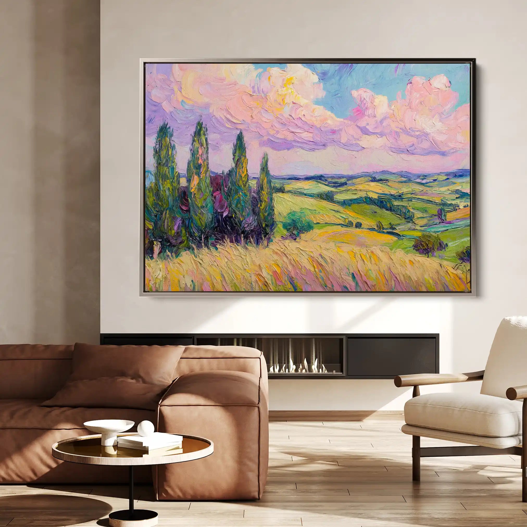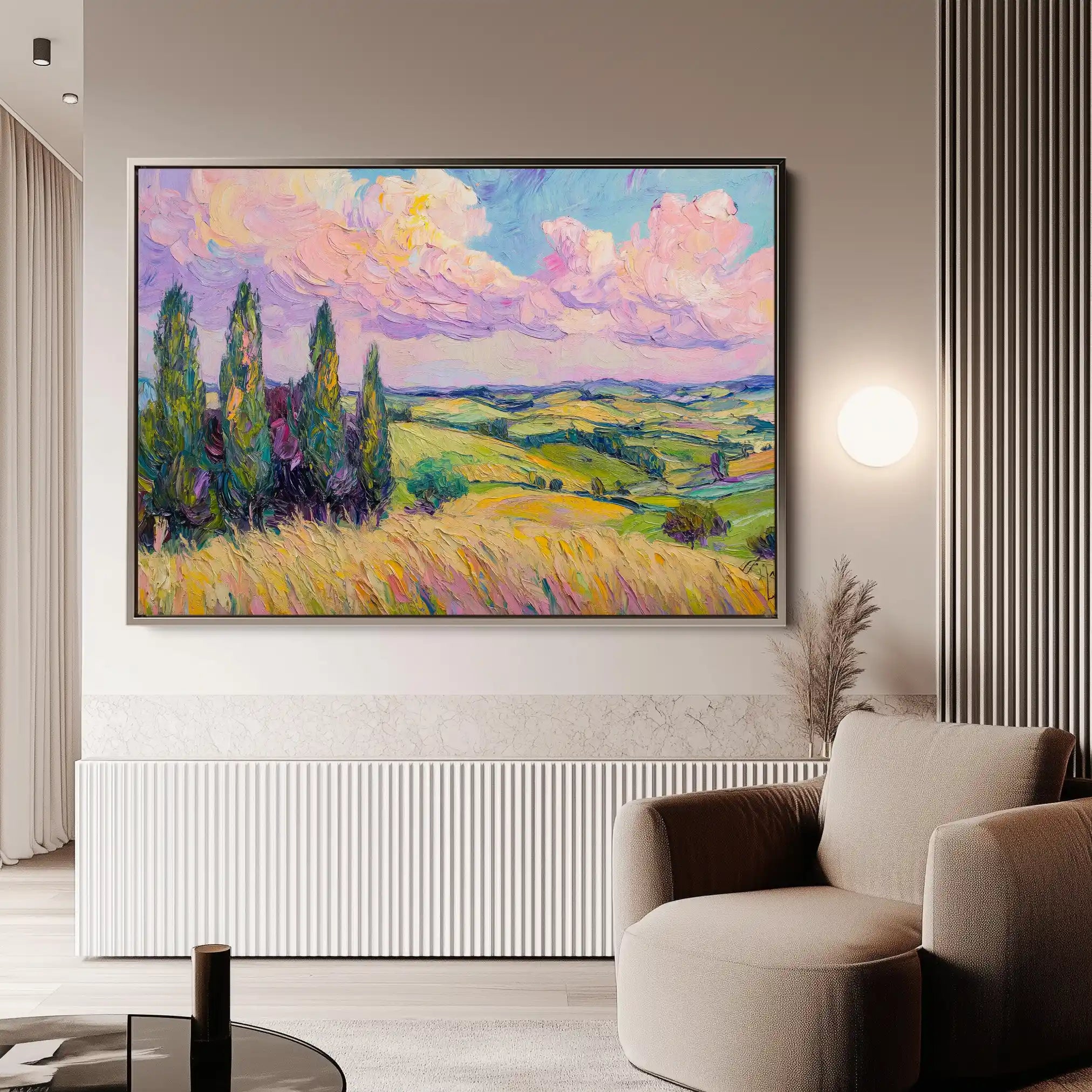 Modern wall art with quiet luxury. Museum-grade printing on 410gsm cotton canvas, set in a slim floater frame—clean, calm, ready to hang.