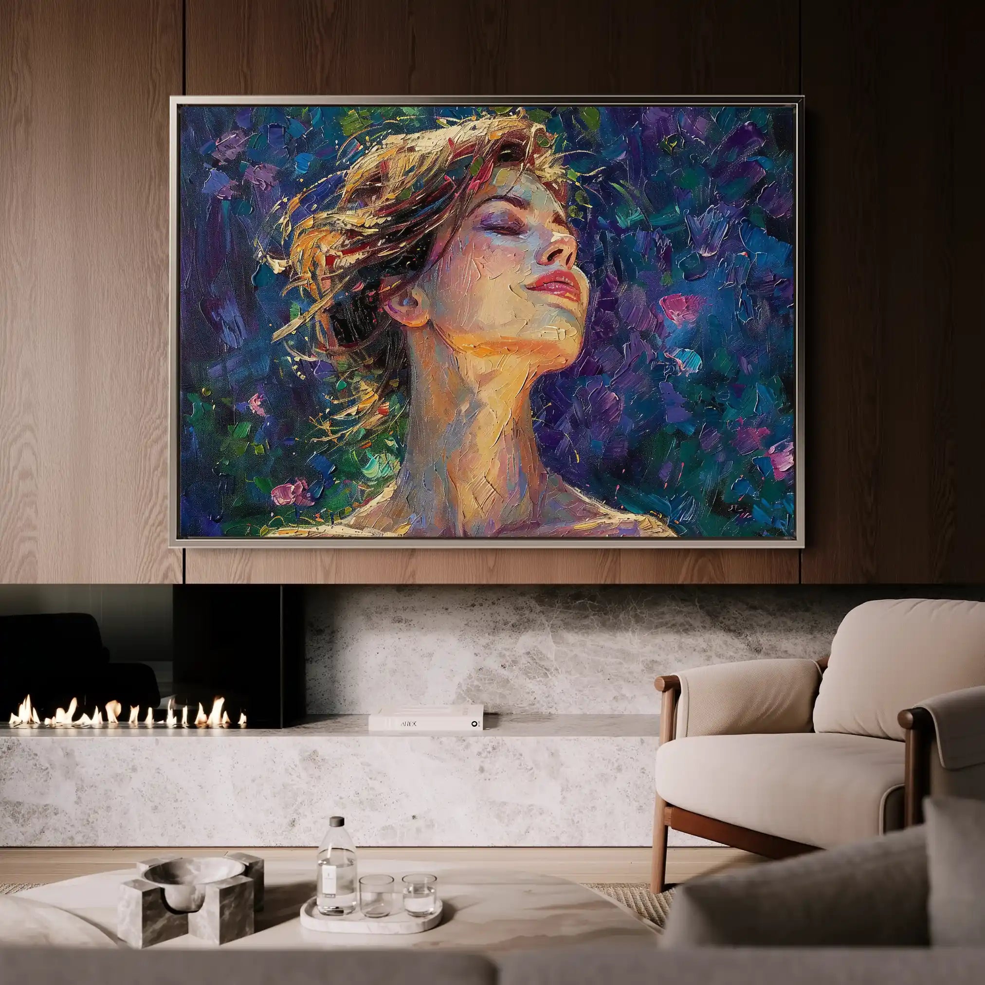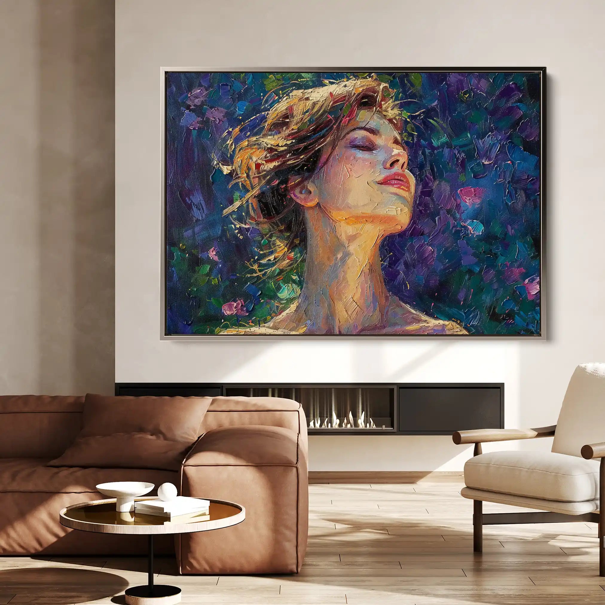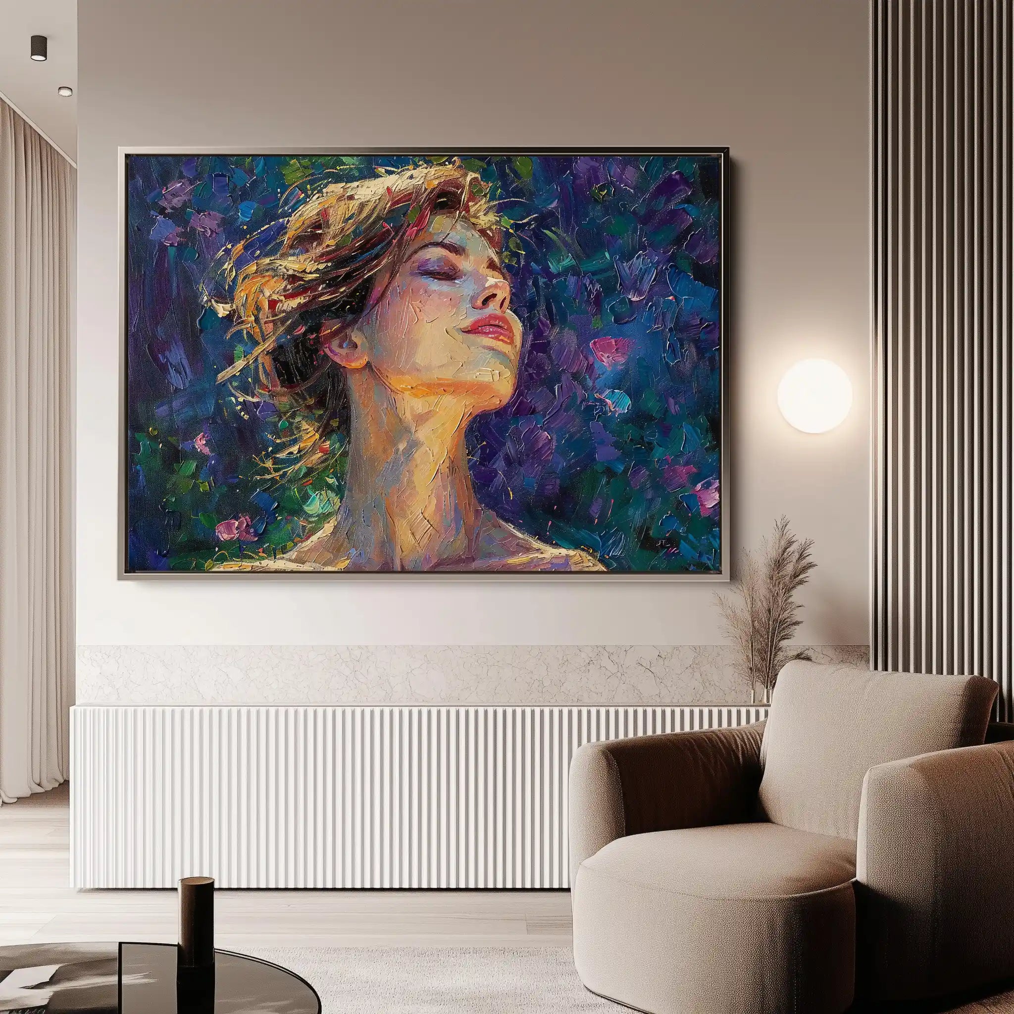 Modern wall art with quiet luxury. Museum-grade printing on 410gsm cotton canvas, set in a slim floater frame—clean, calm, ready to hang.