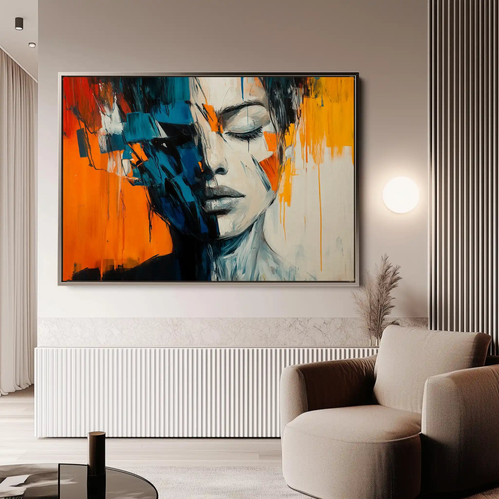 Modern wall art with quiet luxury. Museum-grade printing on 410gsm cotton canvas, set in a slim floater frame—clean, calm, ready to hang.