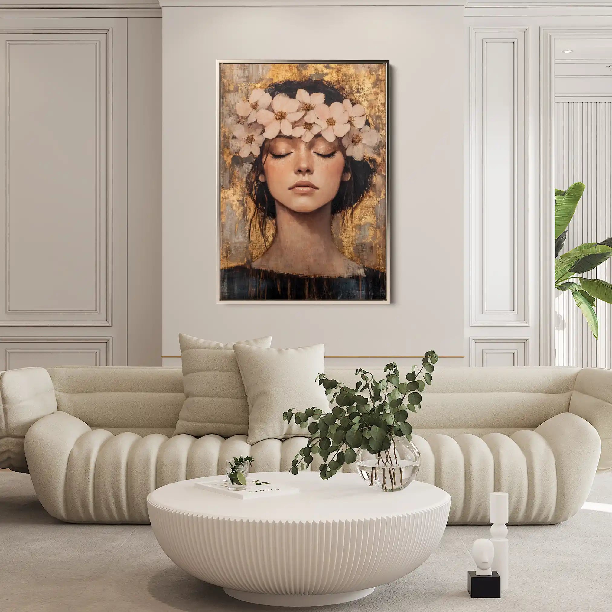 Modern wall art with quiet luxury. Museum-grade printing on 410gsm cotton canvas, set in a slim floater frame—clean, calm, ready to hang.