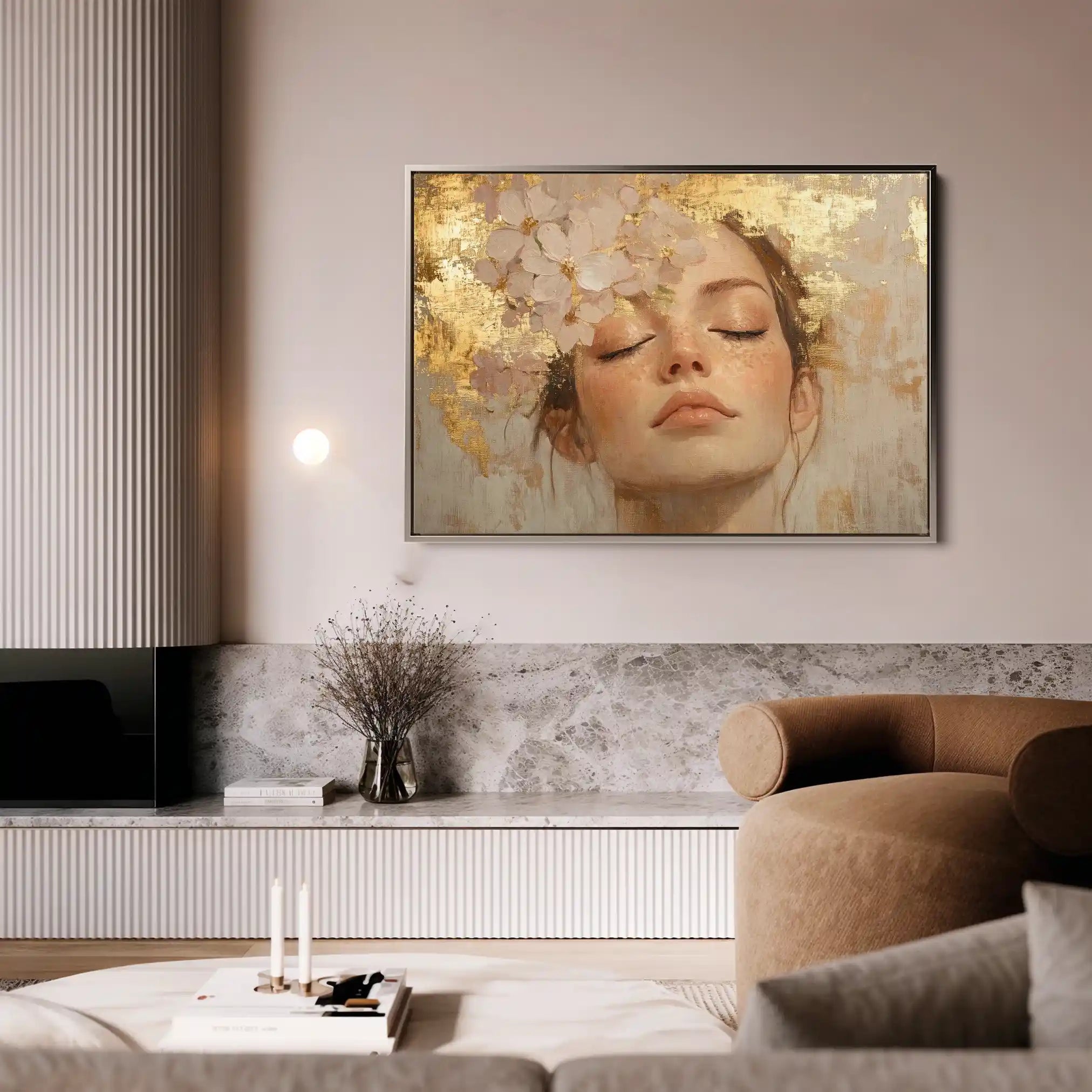 Modern wall art with quiet luxury. Museum-grade printing on 410gsm cotton canvas, set in a slim floater frame—clean, calm, ready to hang.