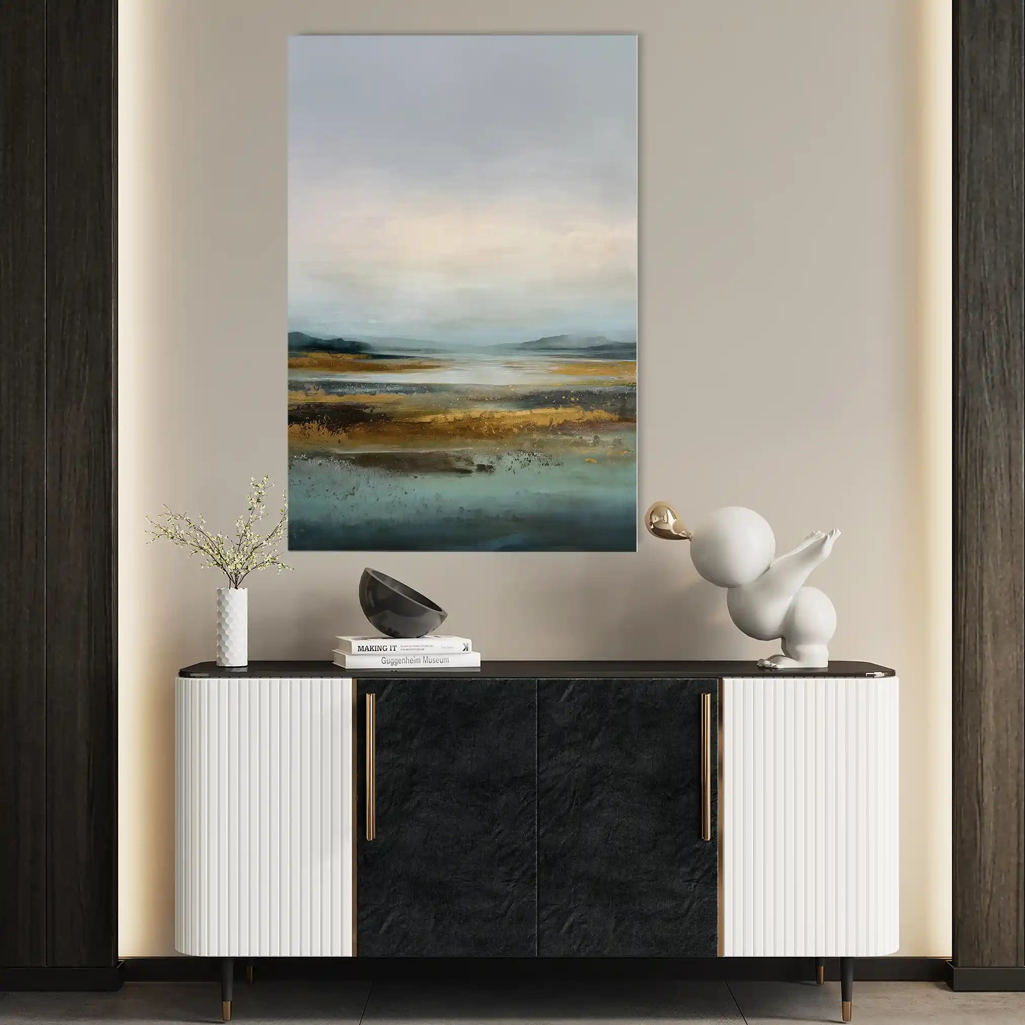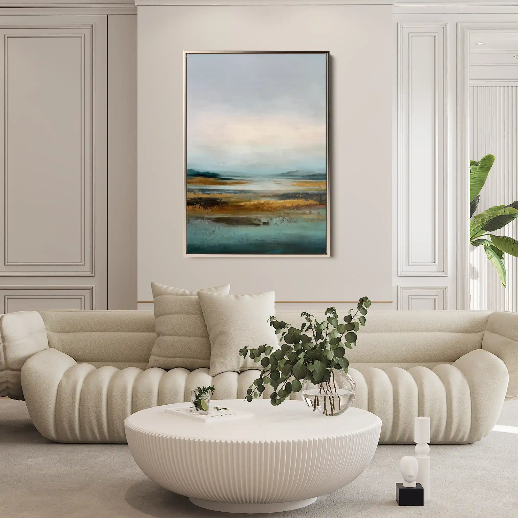 Modern wall art with quiet luxury. Museum-grade printing on 410gsm cotton canvas, set in a slim floater frame—clean, calm, ready to hang.