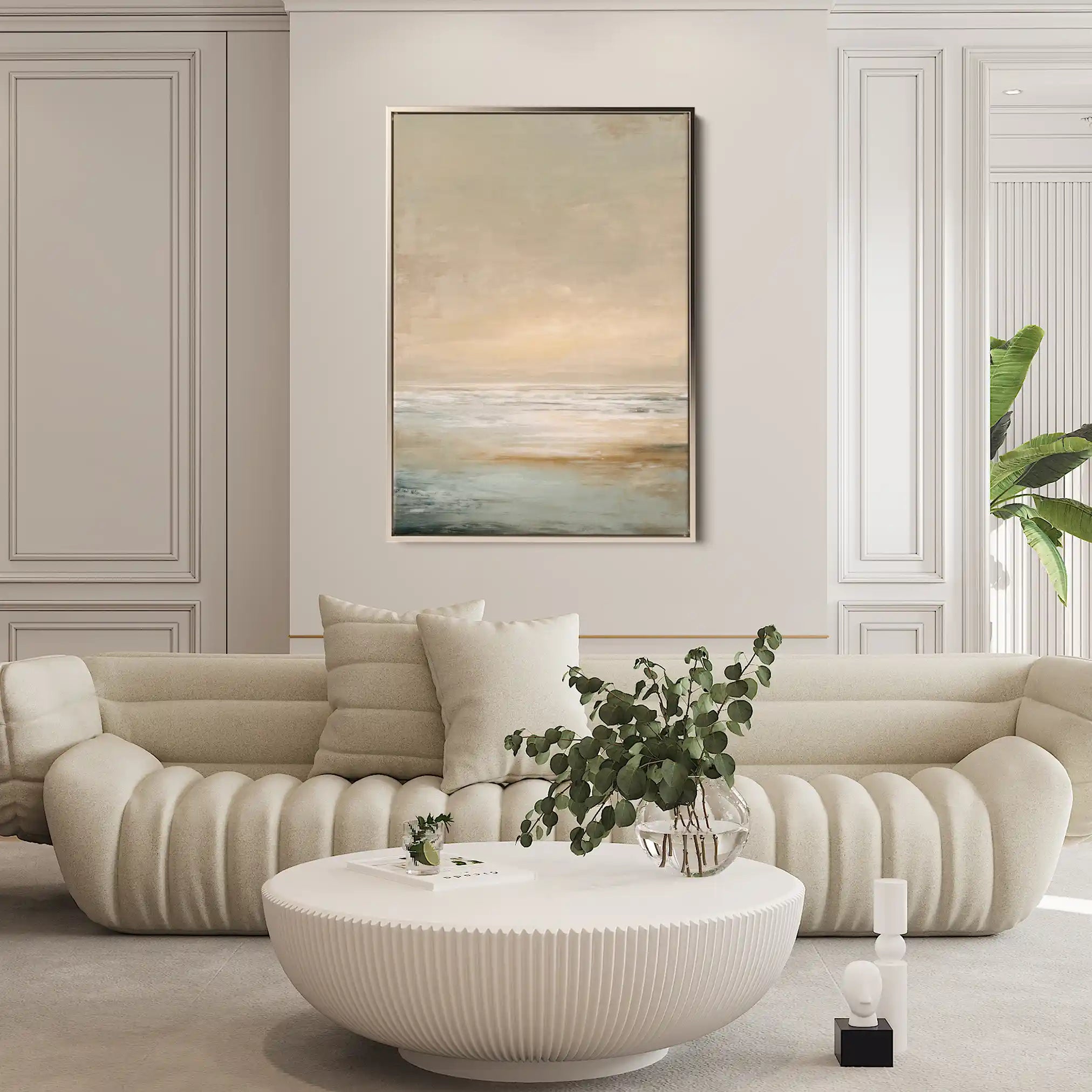 Modern wall art with quiet luxury. Museum-grade printing on 410gsm cotton canvas, set in a slim floater frame—clean, calm, ready to hang.