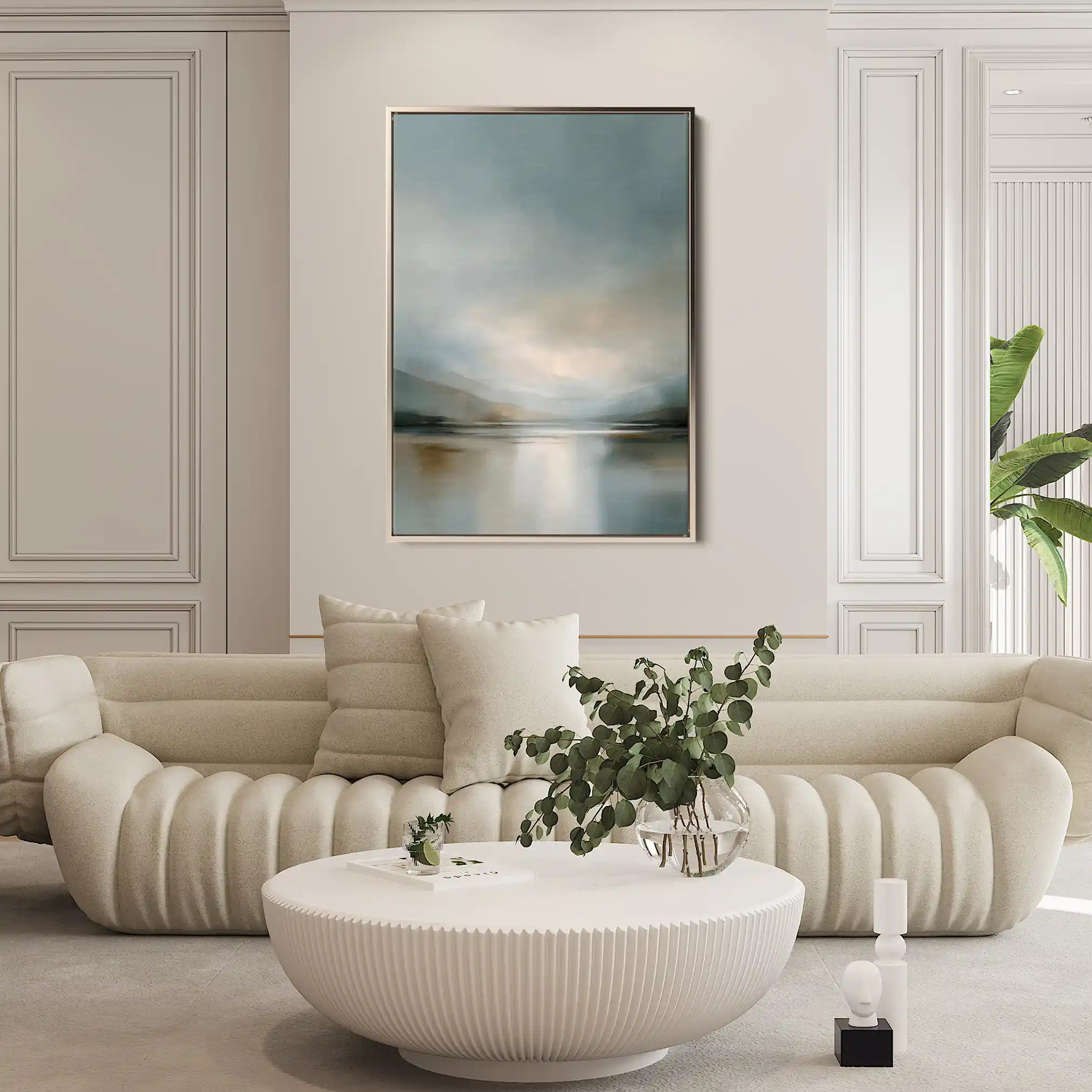 Modern wall art with quiet luxury. Museum-grade printing on 410gsm cotton canvas, set in a slim floater frame—clean, calm, ready to hang.