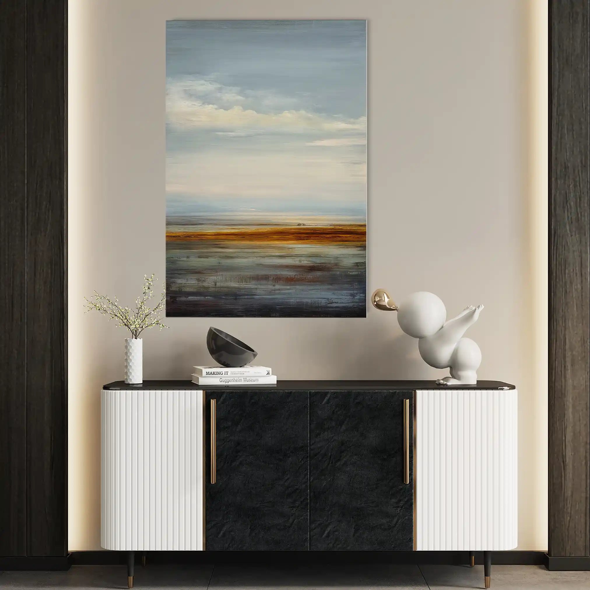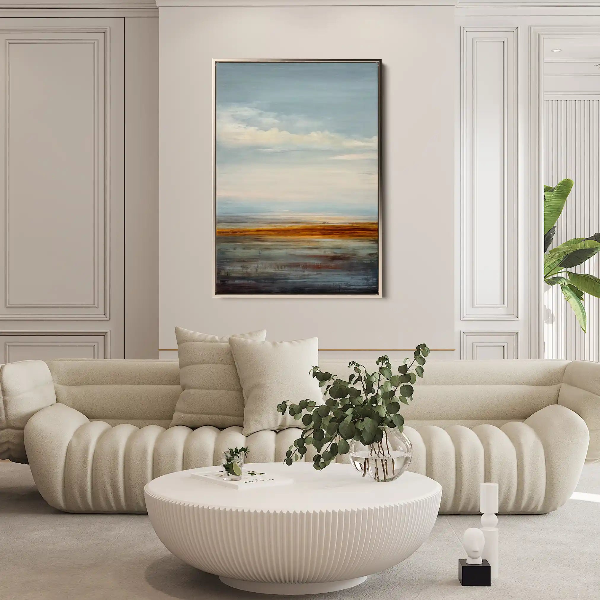 Modern wall art with quiet luxury. Museum-grade printing on 410gsm cotton canvas, set in a slim floater frame—clean, calm, ready to hang.