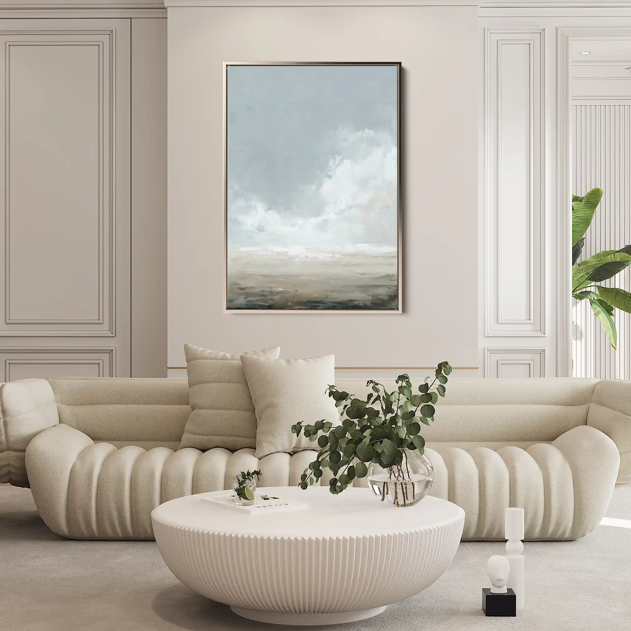 Modern wall art with quiet luxury. Museum-grade printing on 410gsm cotton canvas, set in a slim floater frame—clean, calm, ready to hang.