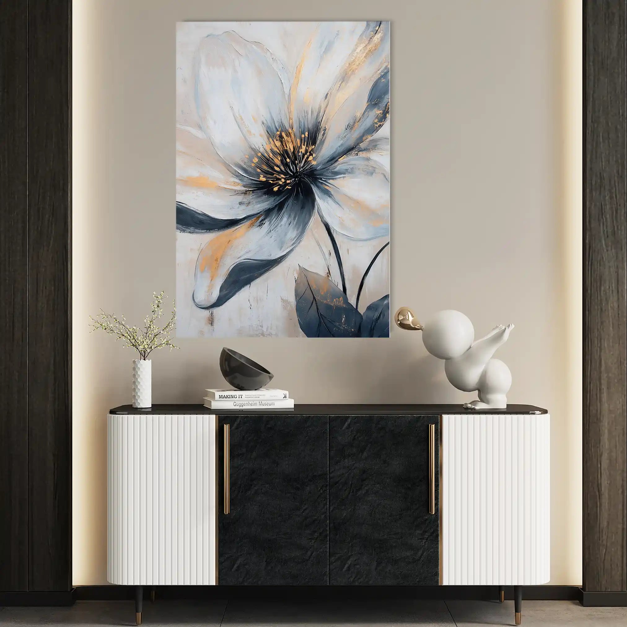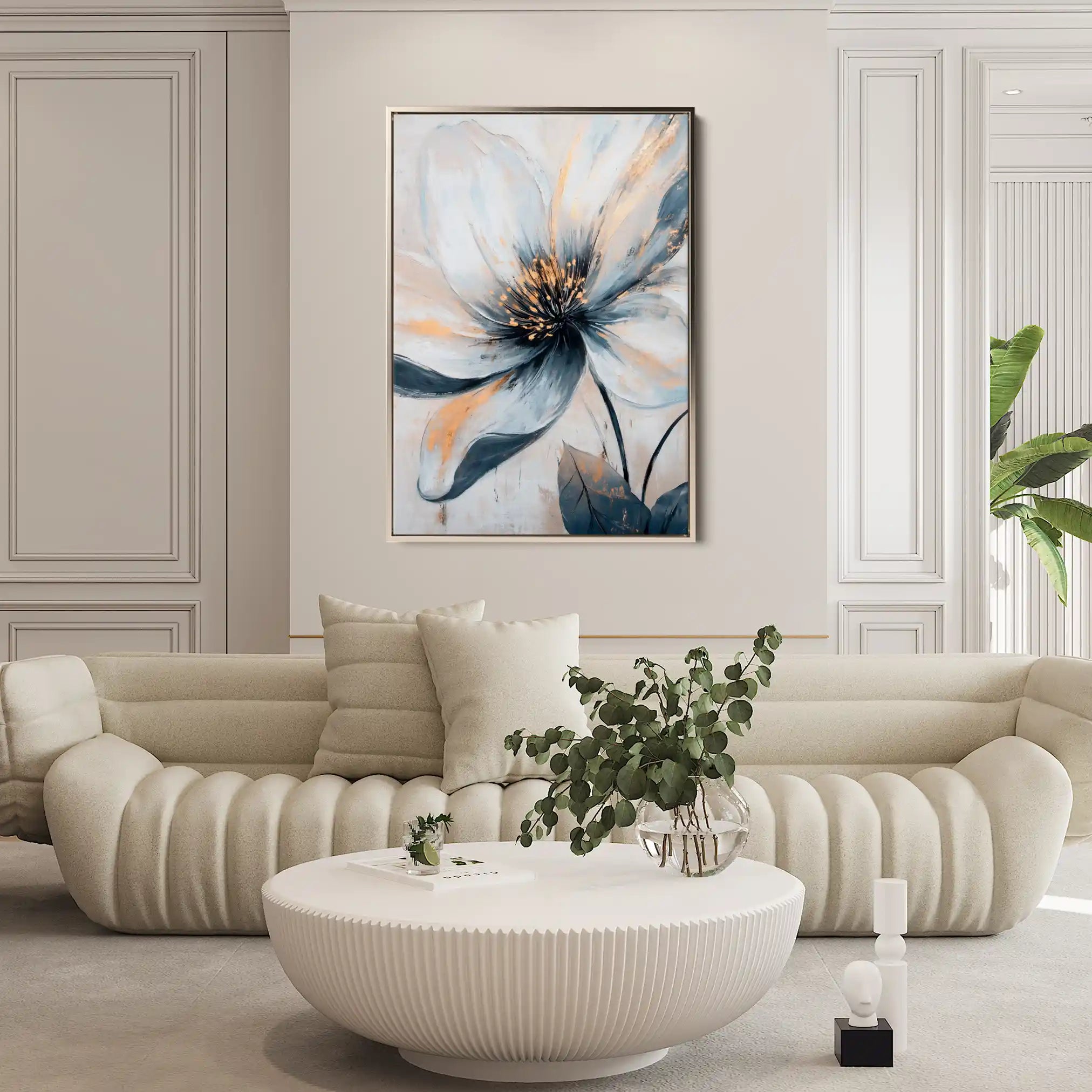 Modern wall art with quiet luxury. Museum-grade printing on 410gsm cotton canvas, set in a slim floater frame—clean, calm, ready to hang.