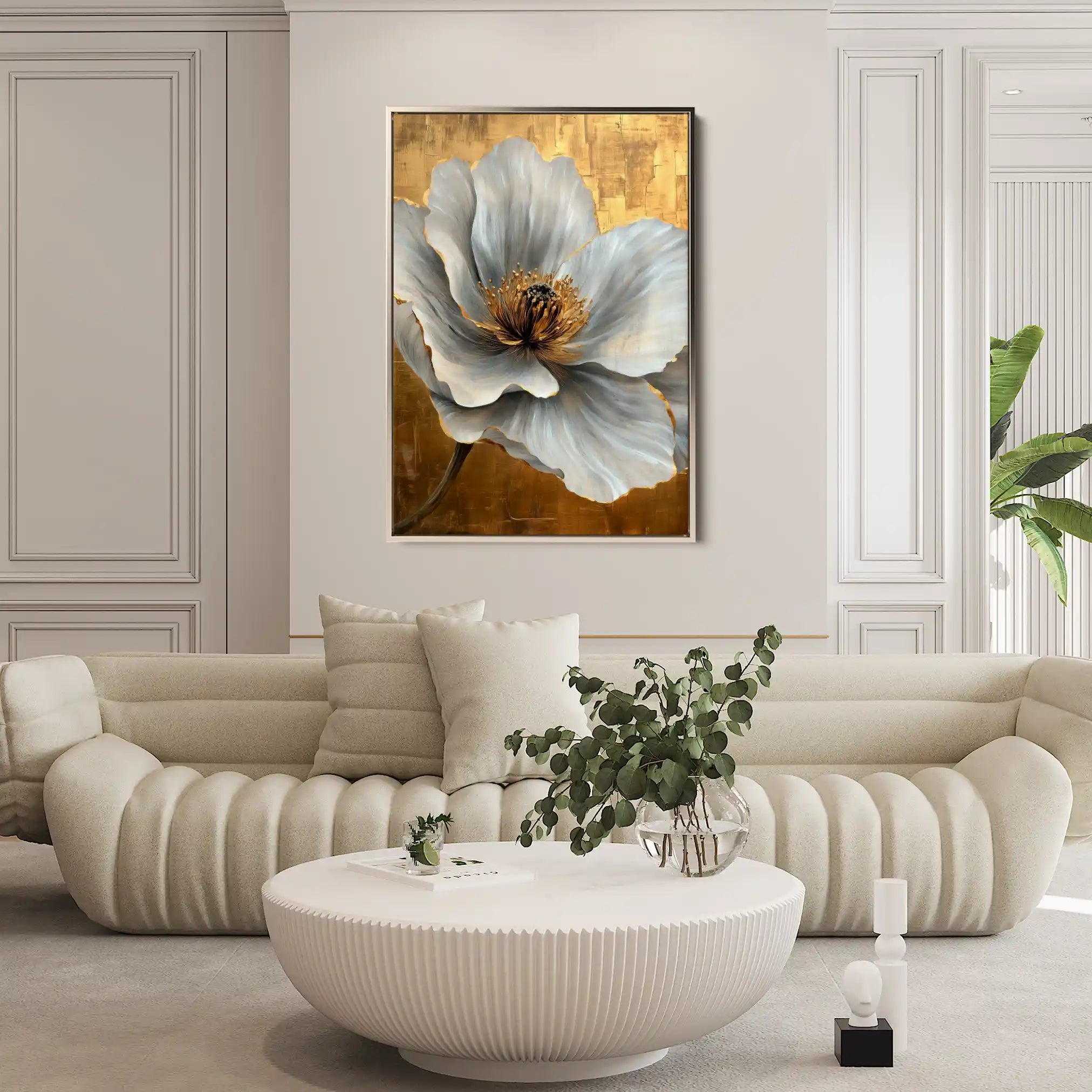 Modern wall art with quiet luxury. Museum-grade printing on 410gsm cotton canvas, set in a slim floater frame—clean, calm, ready to hang.