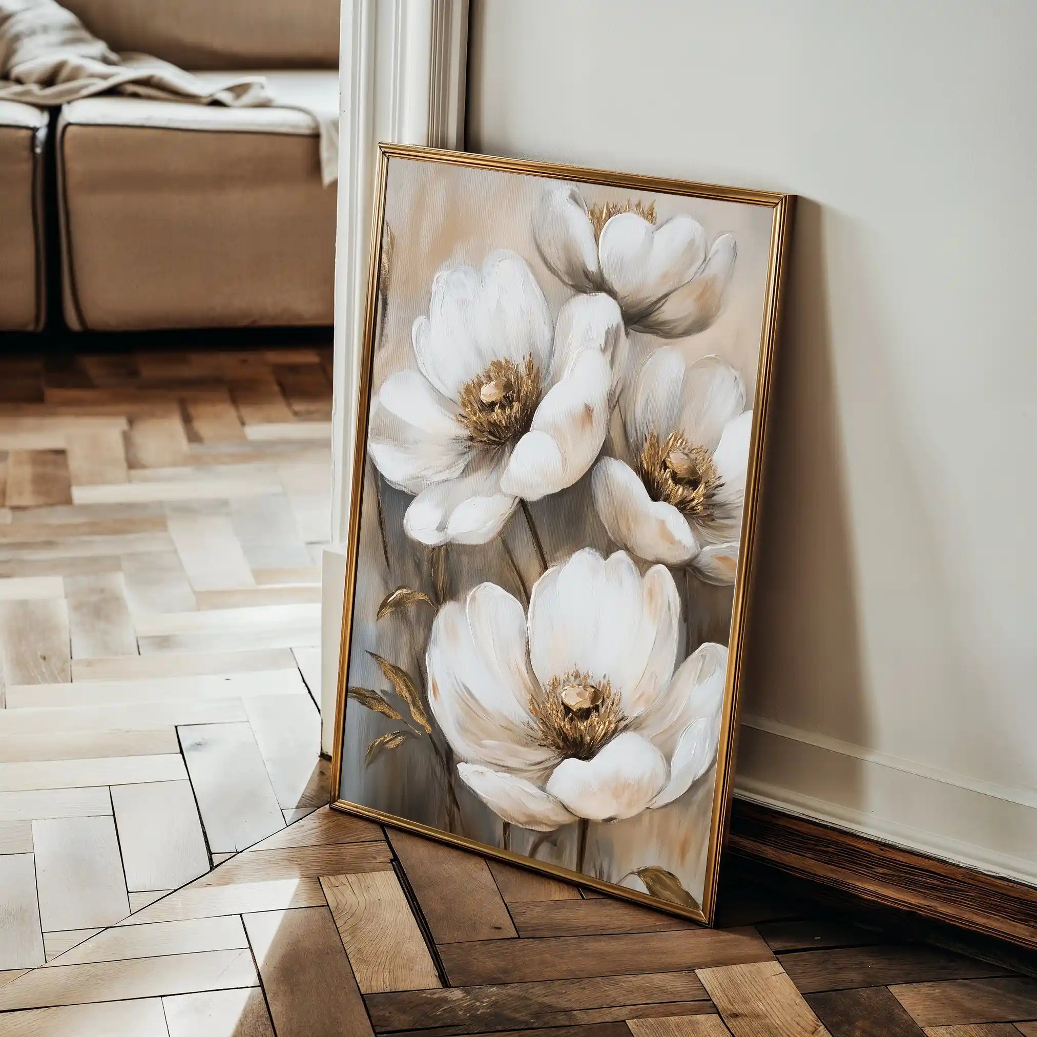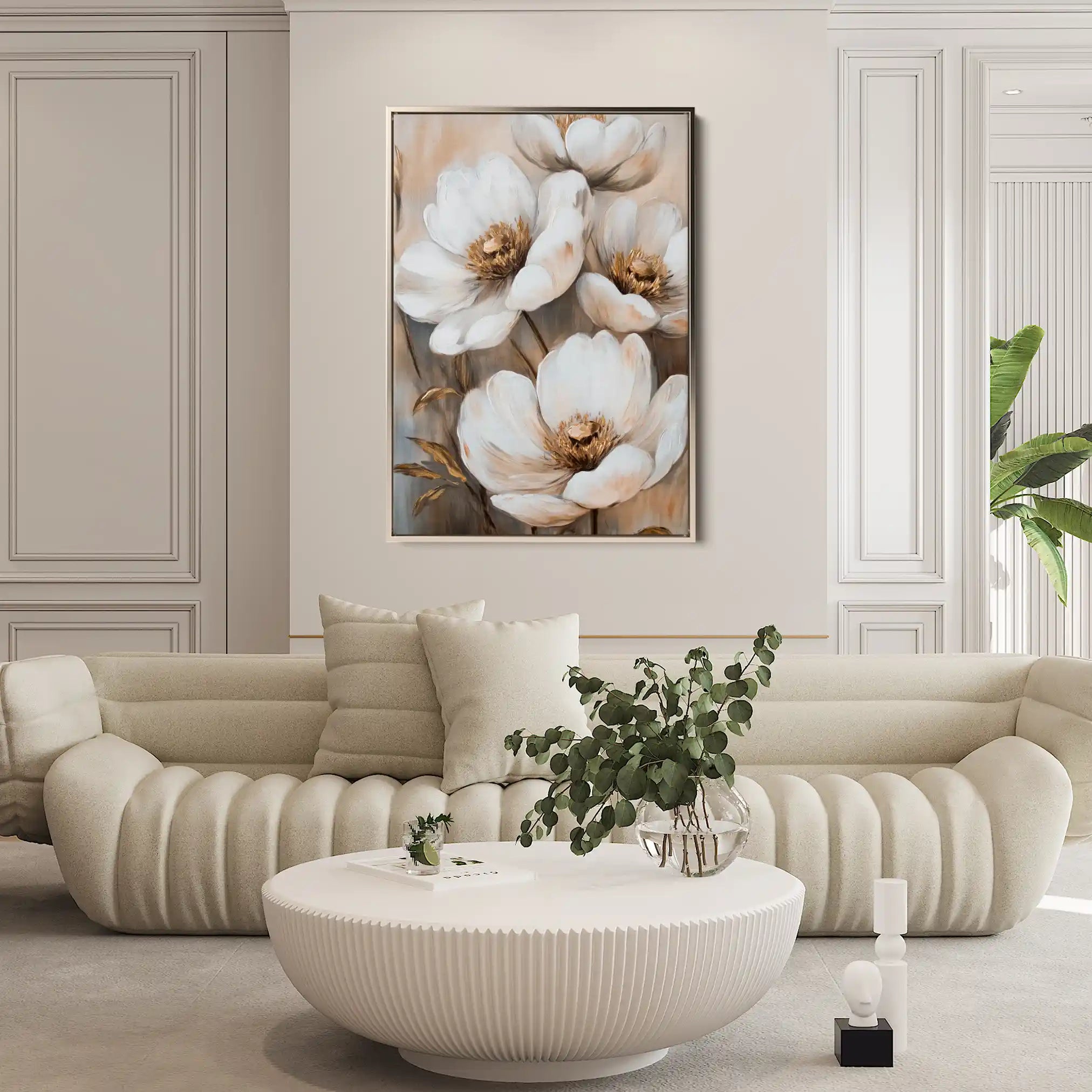 Modern wall art with quiet luxury. Museum-grade printing on 410gsm cotton canvas, set in a slim floater frame—clean, calm, ready to hang.