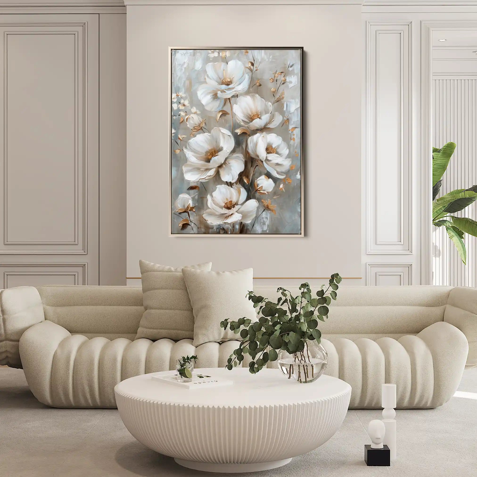 Modern wall art with quiet luxury. Museum-grade printing on 410gsm cotton canvas, set in a slim floater frame—clean, calm, ready to hang.