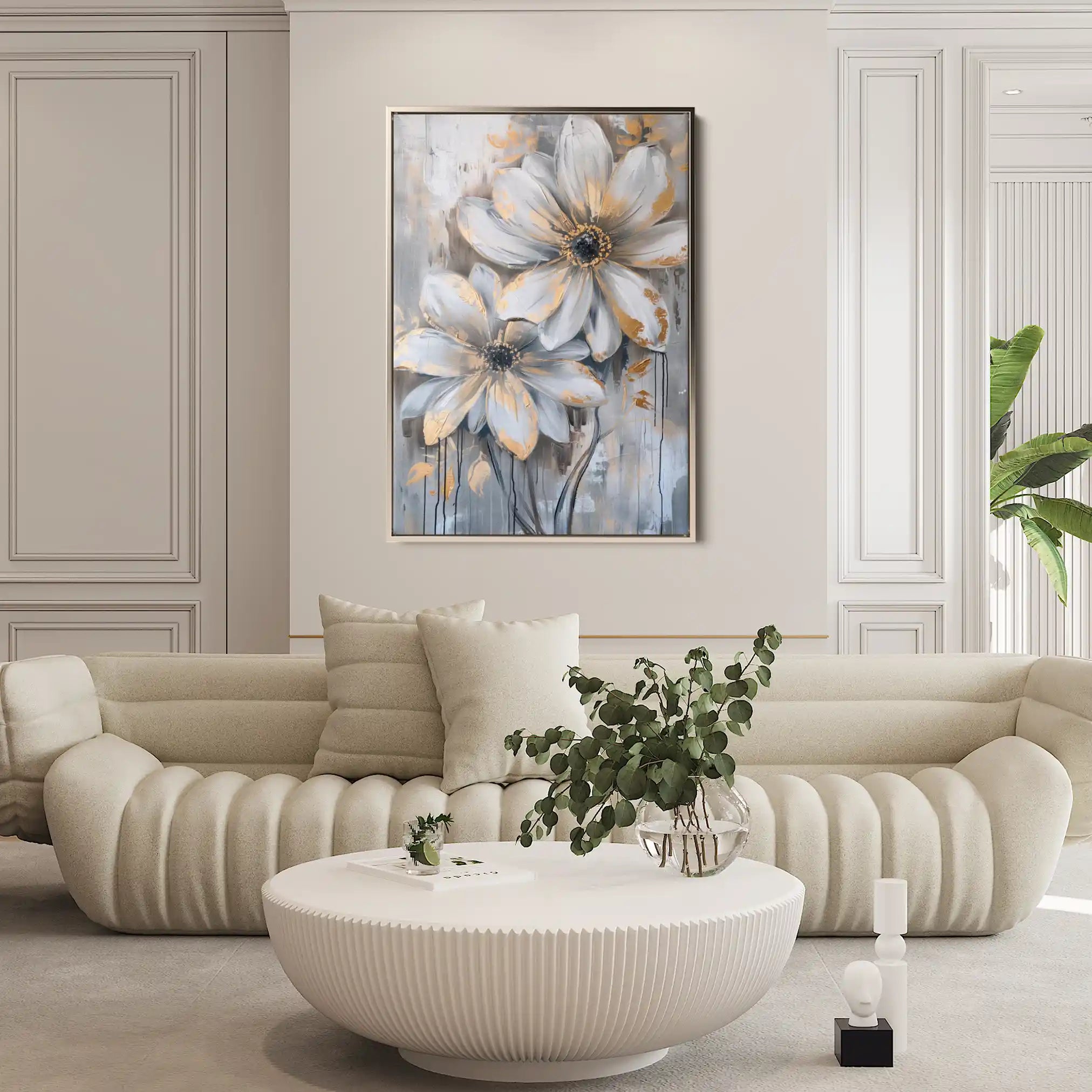 Modern wall art with quiet luxury. Museum-grade printing on 410gsm cotton canvas, set in a slim floater frame—clean, calm, ready to hang.