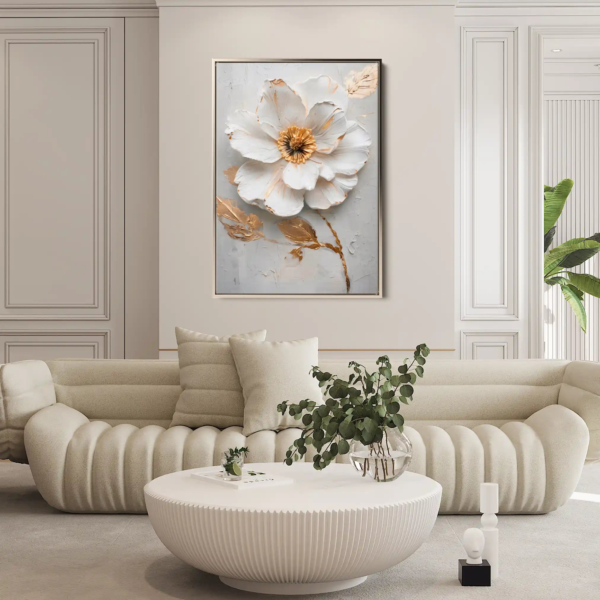 Modern wall art with quiet luxury. Museum-grade printing on 410gsm cotton canvas, set in a slim floater frame—clean, calm, ready to hang.