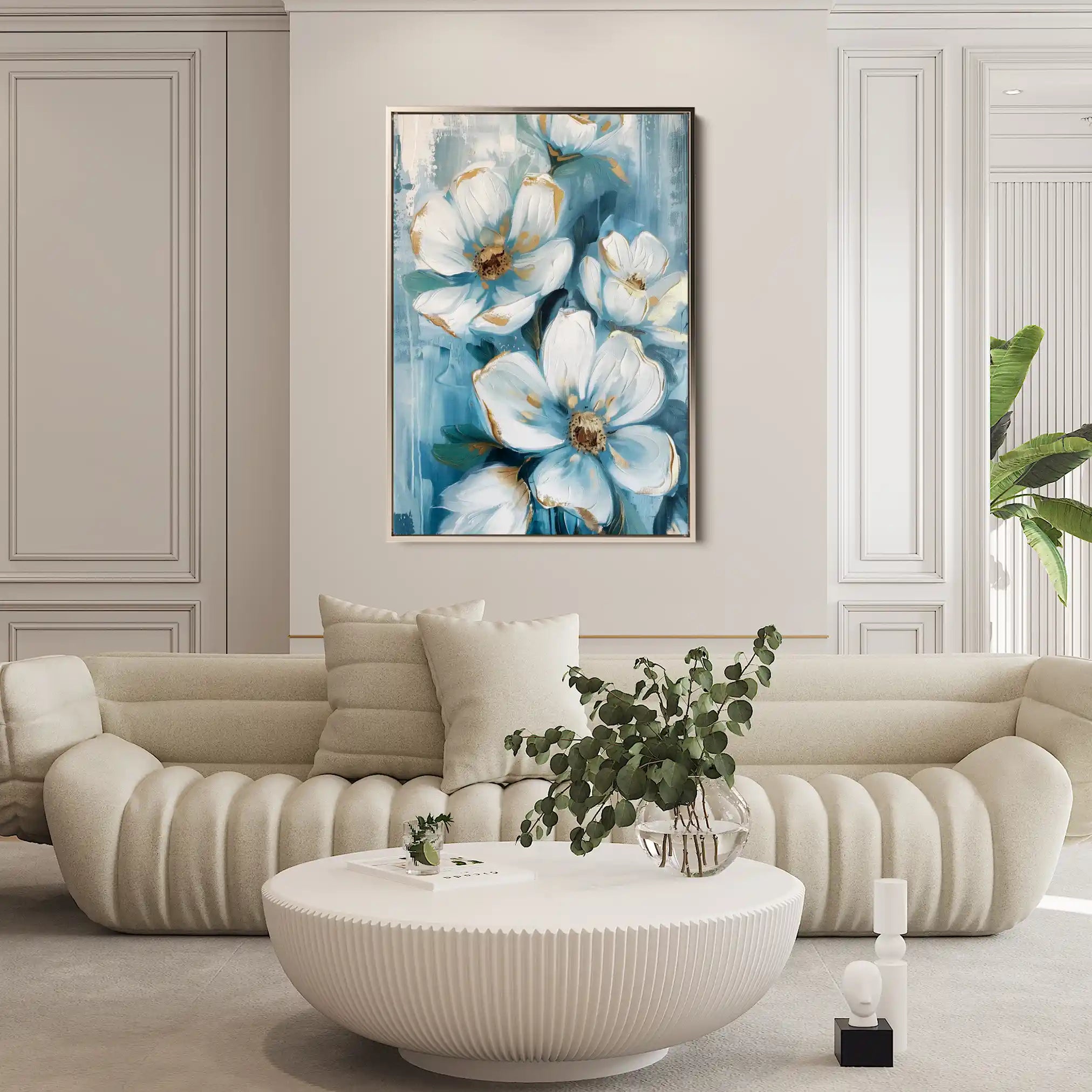 Modern wall art with quiet luxury. Museum-grade printing on 410gsm cotton canvas, set in a slim floater frame—clean, calm, ready to hang.