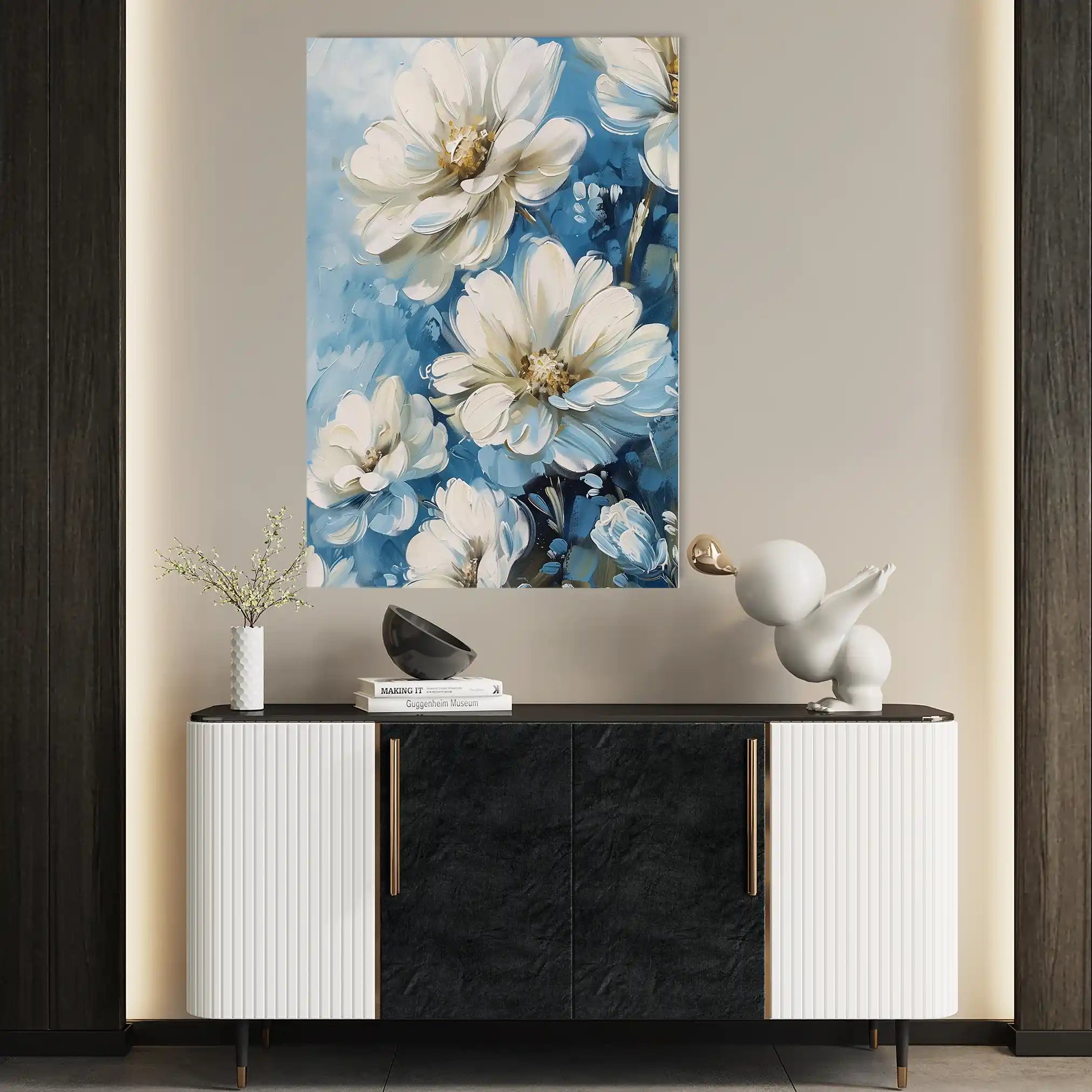 Modern wall art with quiet luxury. Museum-grade printing on 410gsm cotton canvas, set in a slim floater frame—clean, calm, ready to hang.
