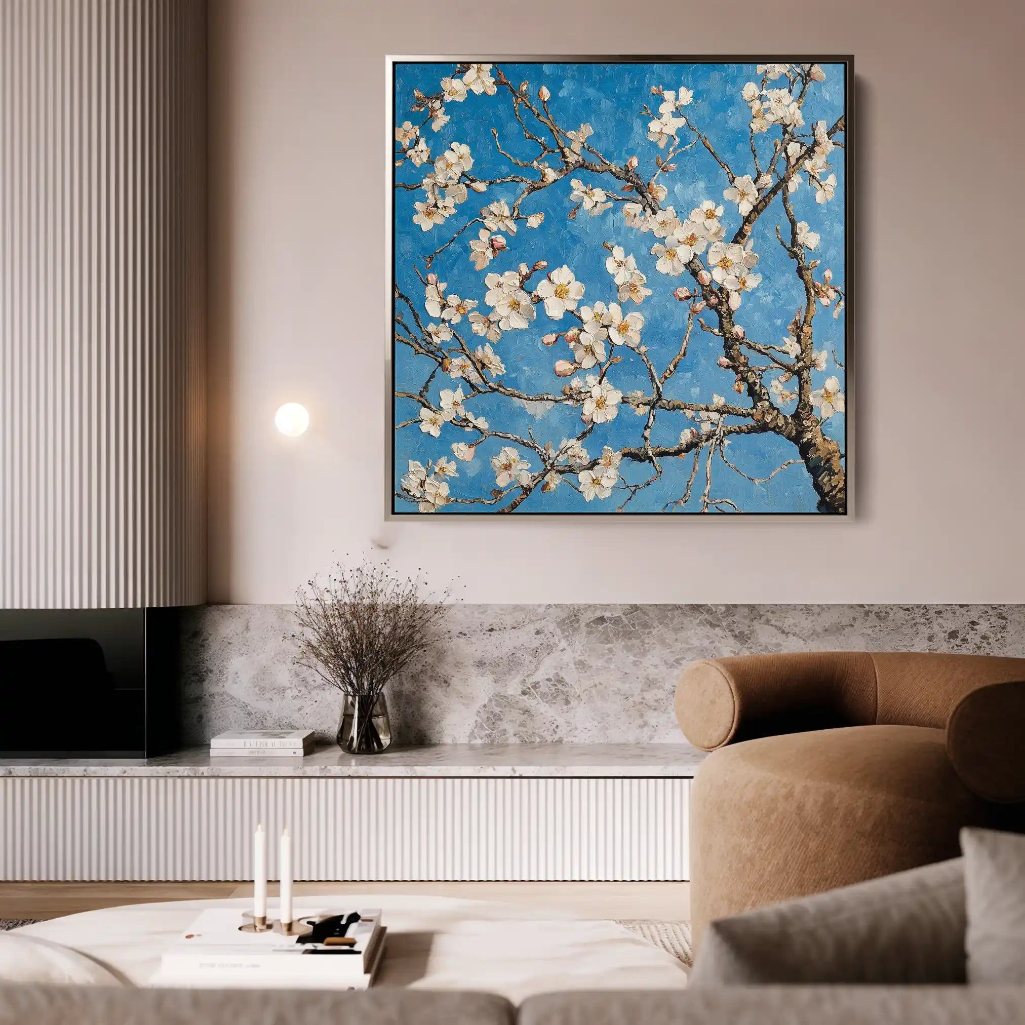 Modern wall art with quiet luxury. Museum-grade printing on 410gsm cotton canvas, set in a slim floater frame—clean, calm, ready to hang.