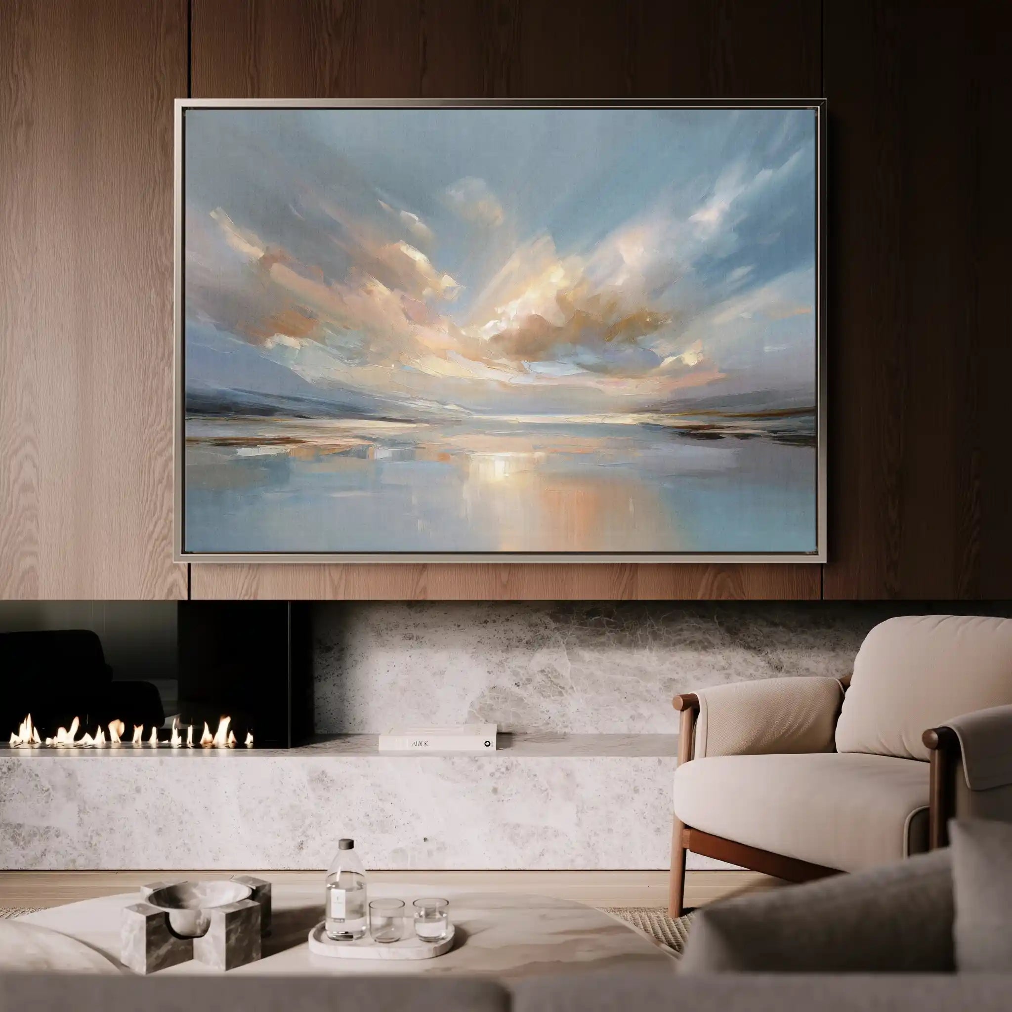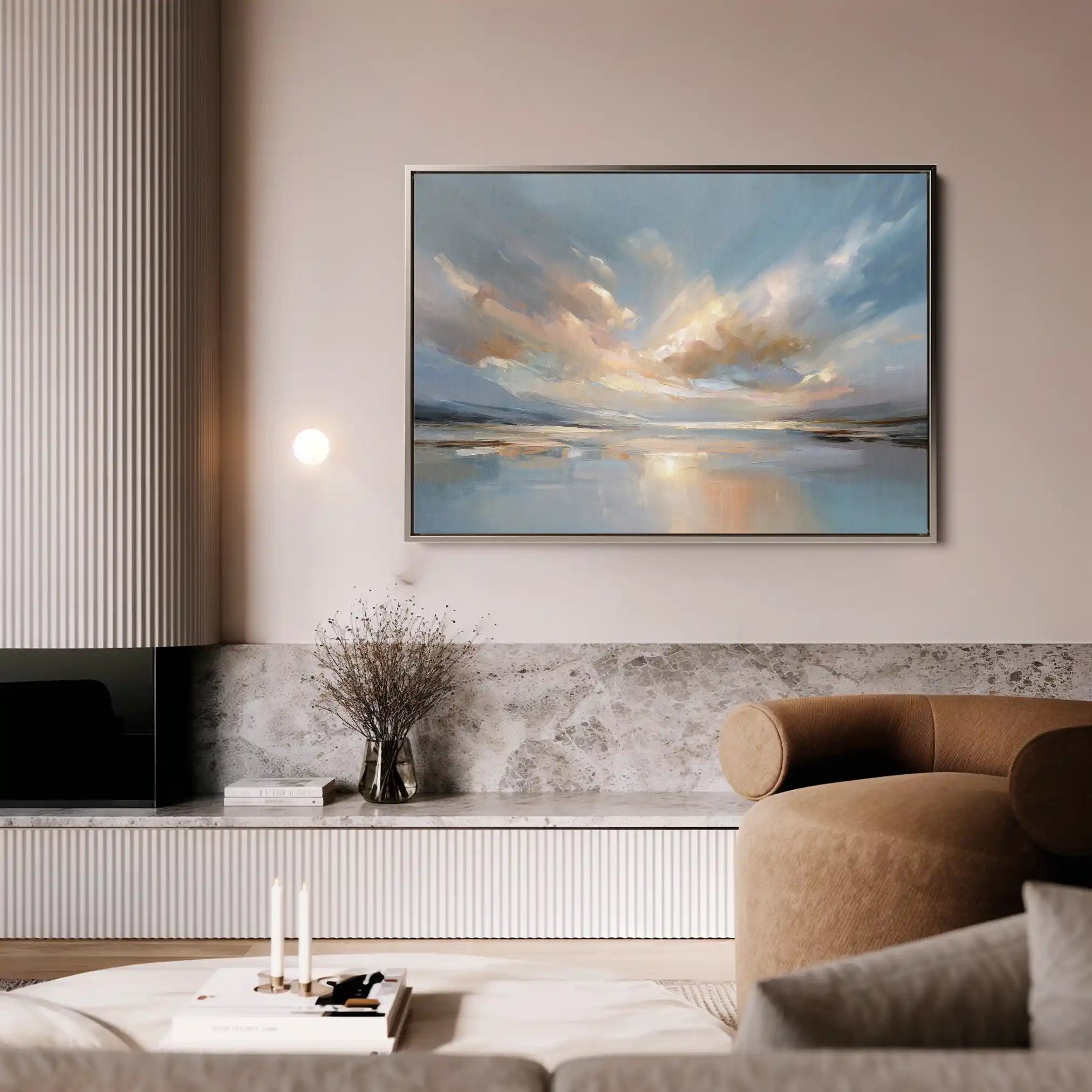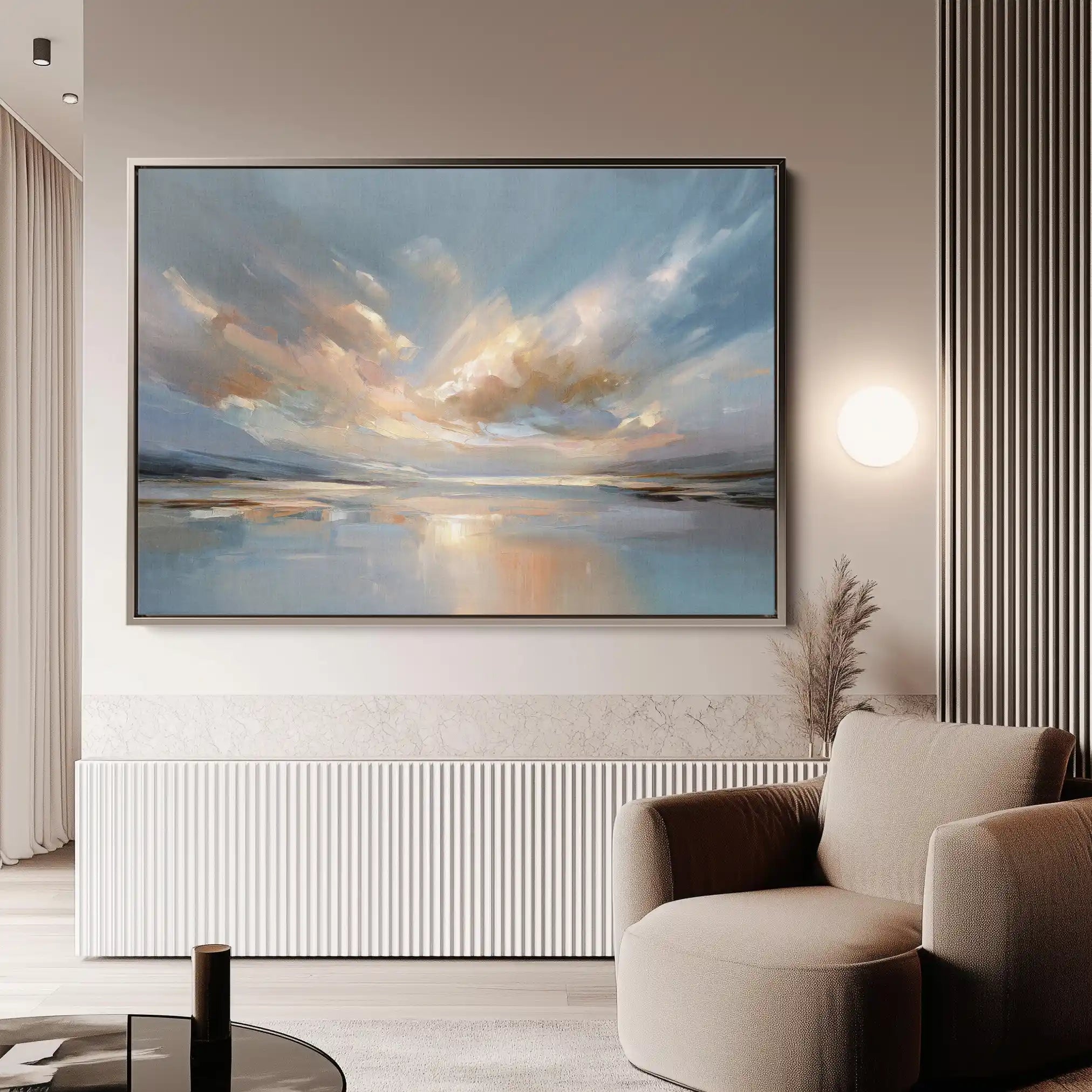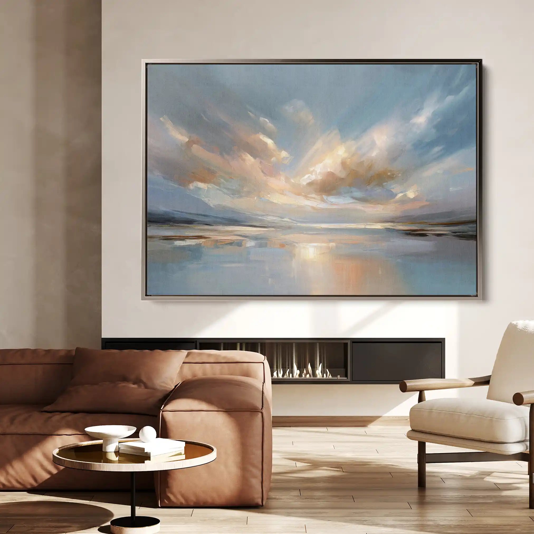 Modern wall art with quiet luxury. Museum-grade printing on 410gsm cotton canvas, set in a slim floater frame—clean, calm, ready to hang.