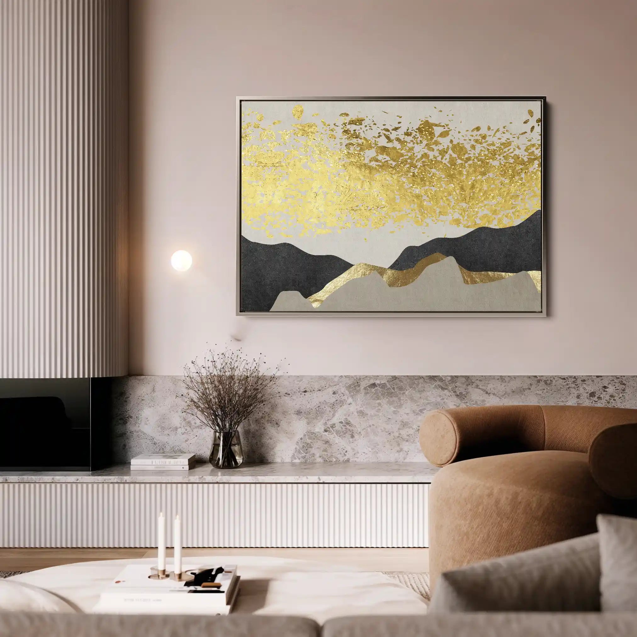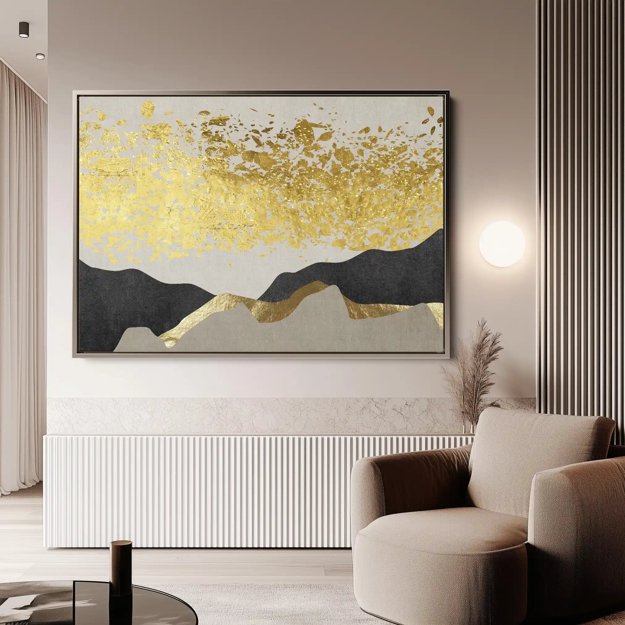Modern wall art with quiet luxury. Museum-grade printing on 410gsm cotton canvas, set in a slim floater frame—clean, calm, ready to hang.