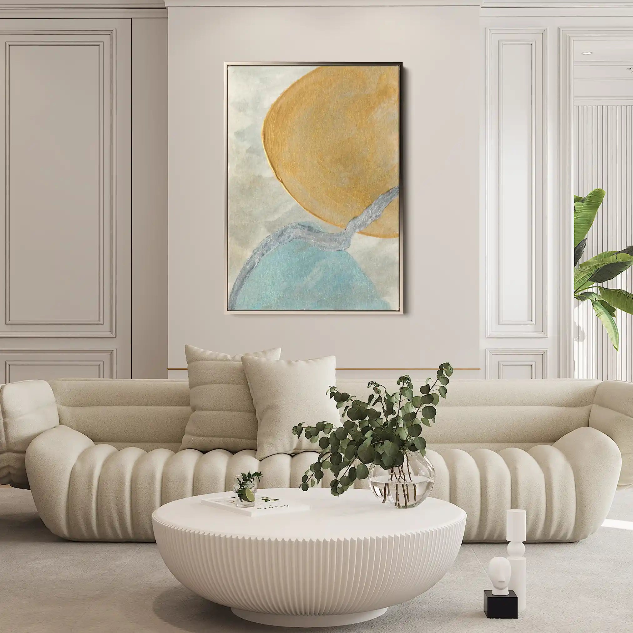 Modern wall art with quiet luxury. Museum-grade printing on 410gsm cotton canvas, set in a slim floater frame—clean, calm, ready to hang.