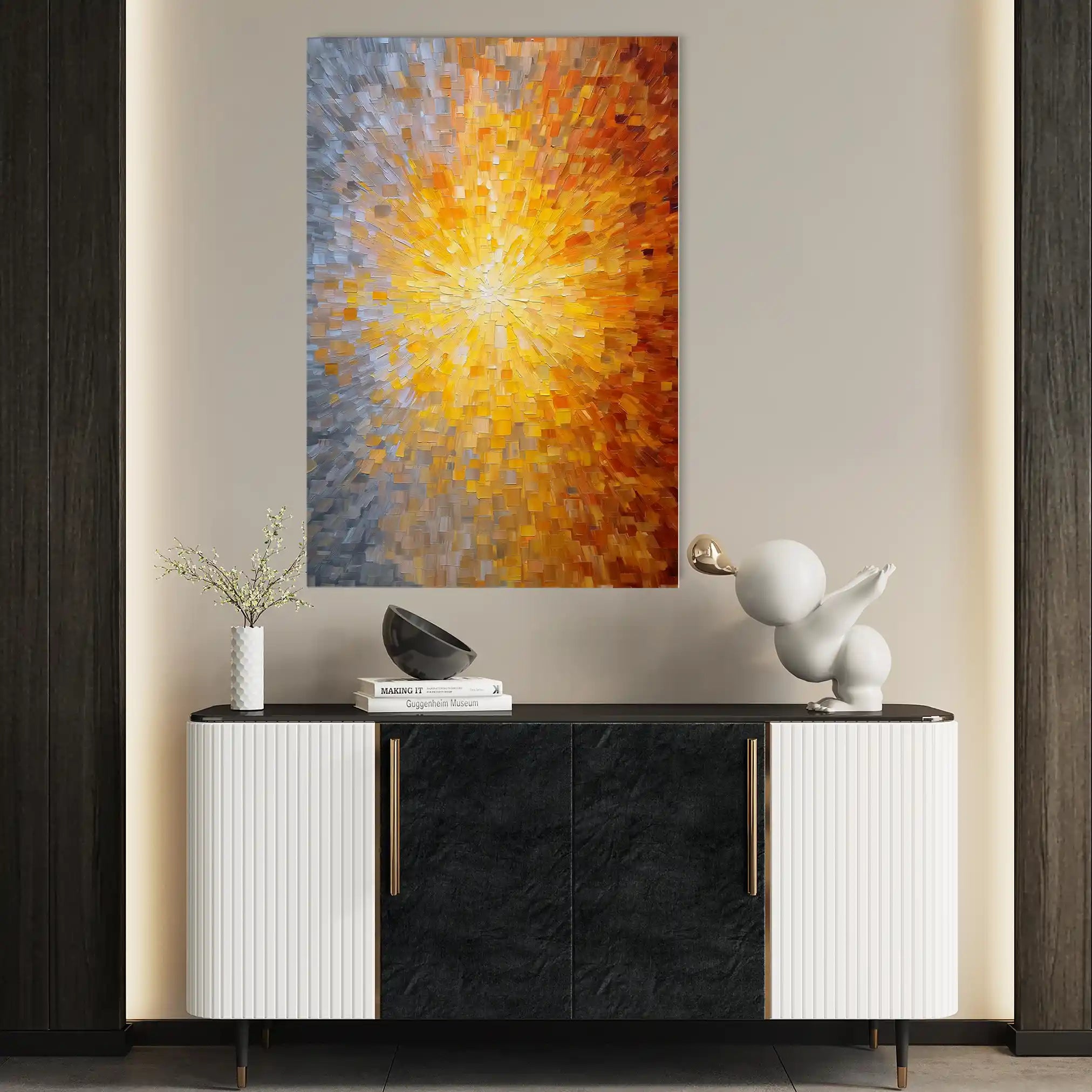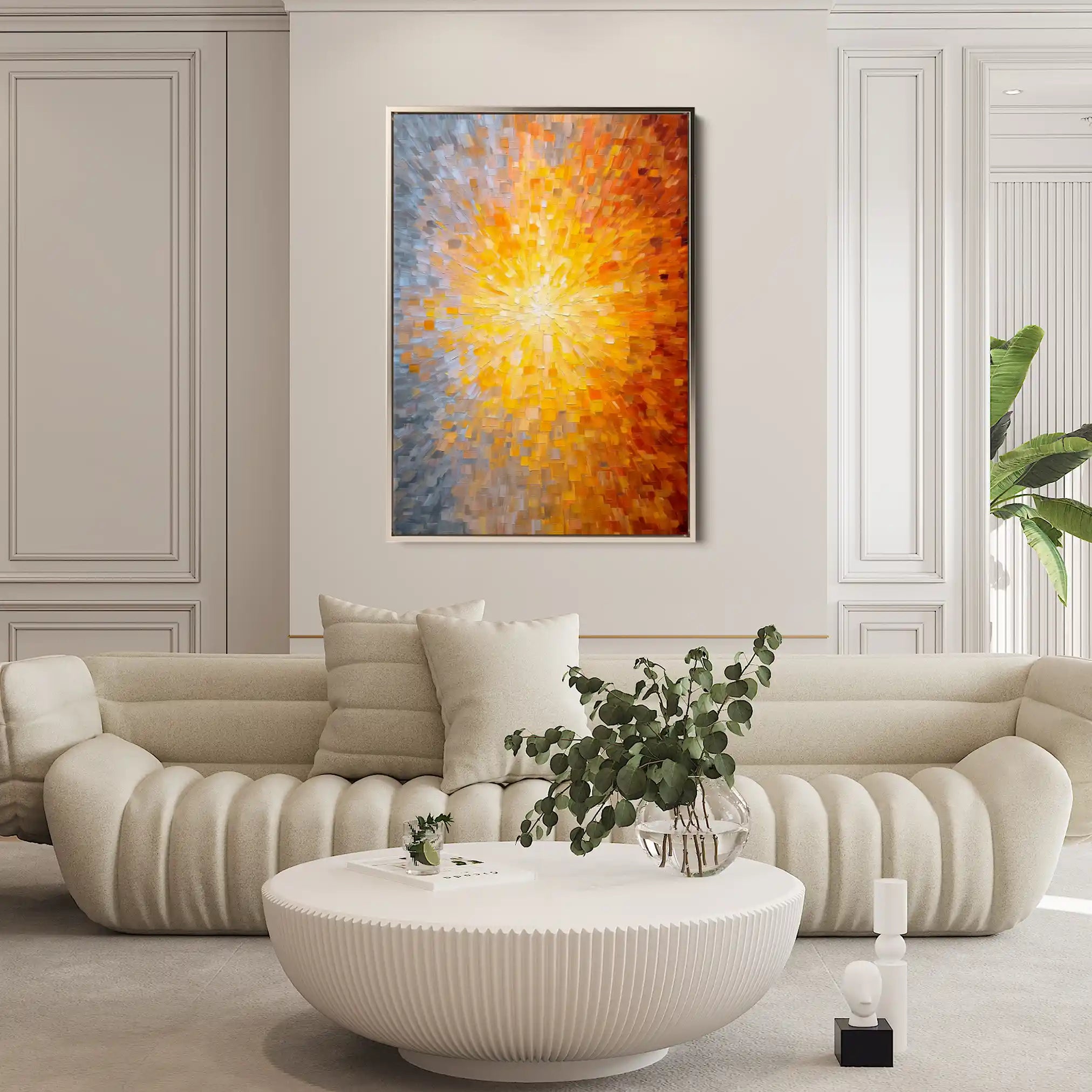 Modern wall art with quiet luxury. Museum-grade printing on 410gsm cotton canvas, set in a slim floater frame—clean, calm, ready to hang.