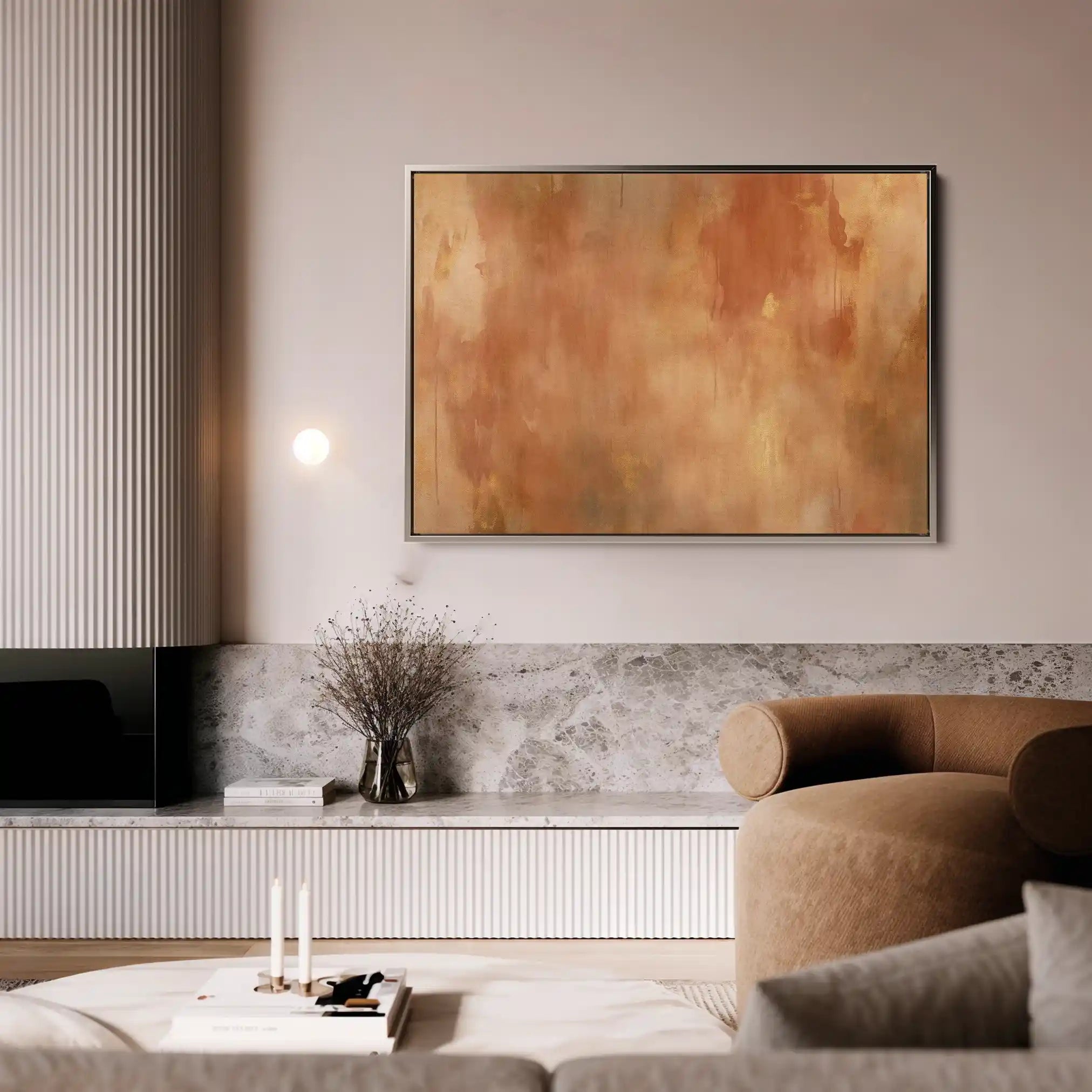 Modern wall art with quiet luxury. Museum-grade printing on 410gsm cotton canvas, set in a slim floater frame—clean, calm, ready to hang.